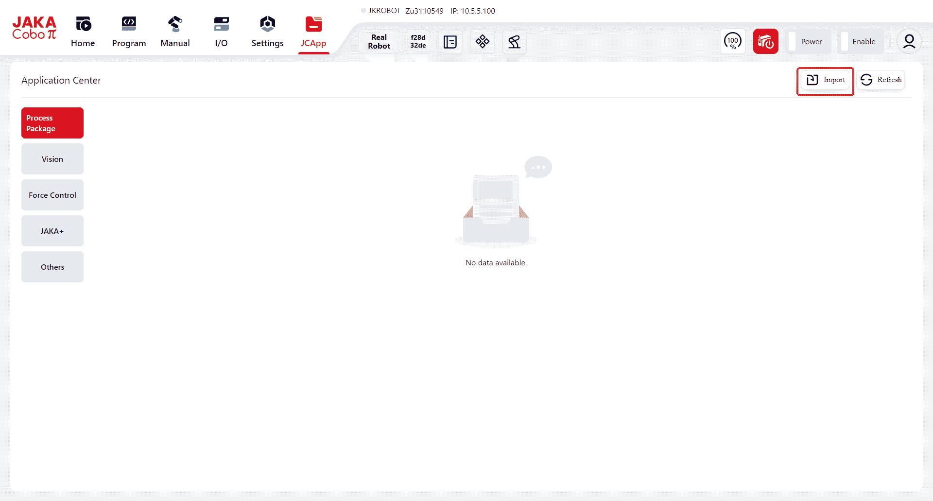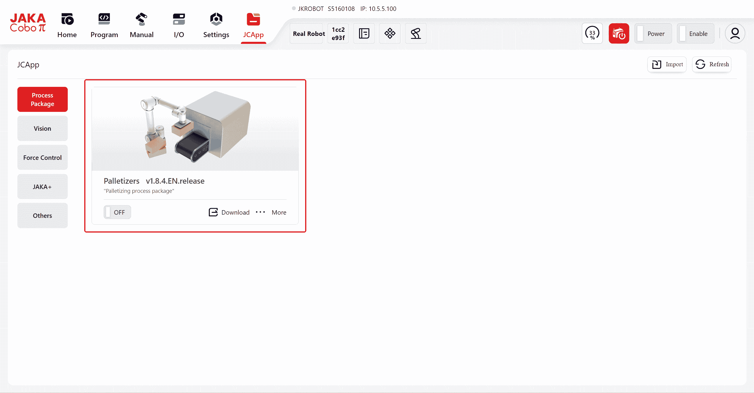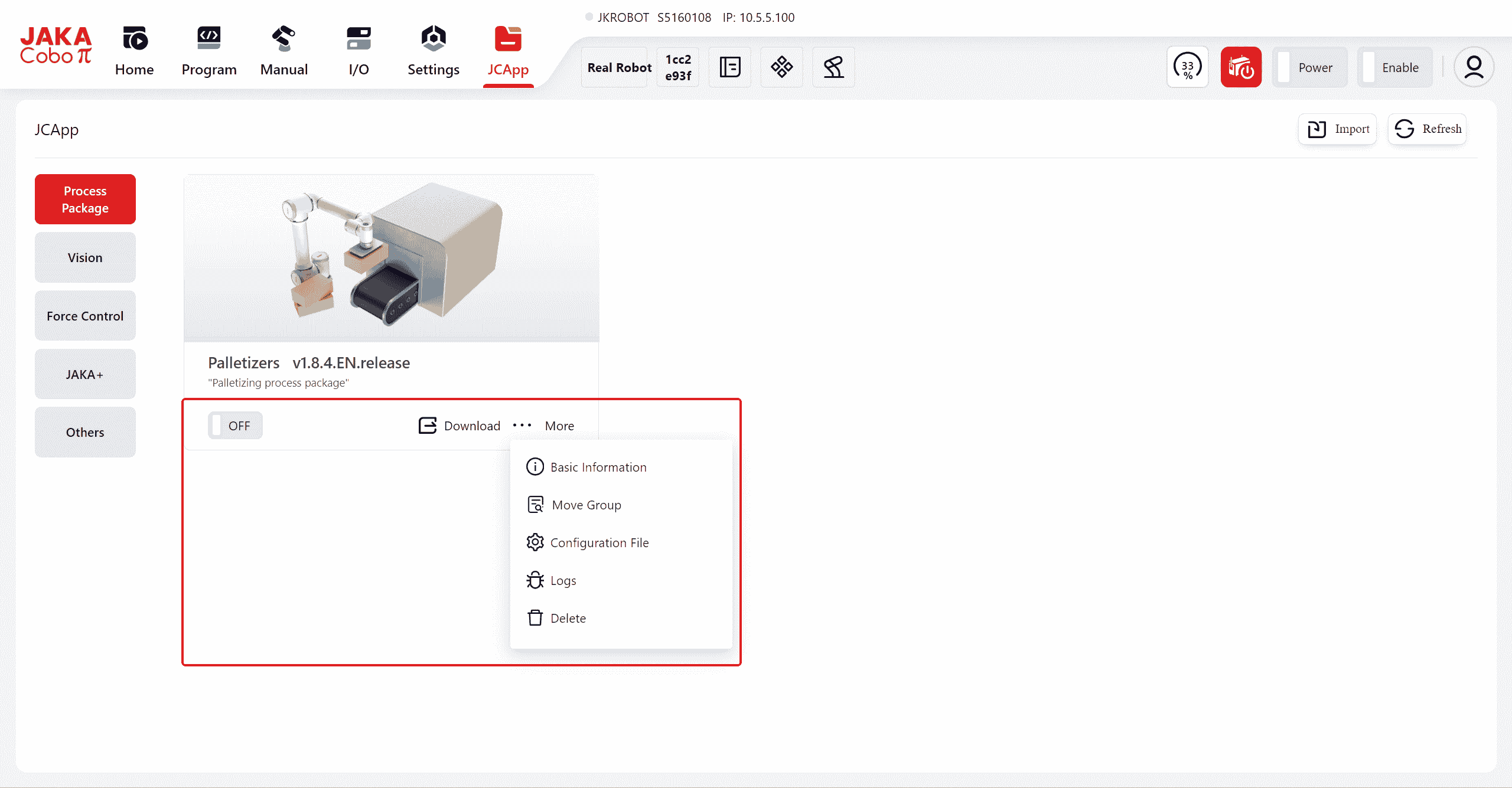 entry has been added, which contains four Addon packages developed by JAKA. Users can choose the required package, download it locally, and then upload it for use. The upload steps are the same as in other versions.
