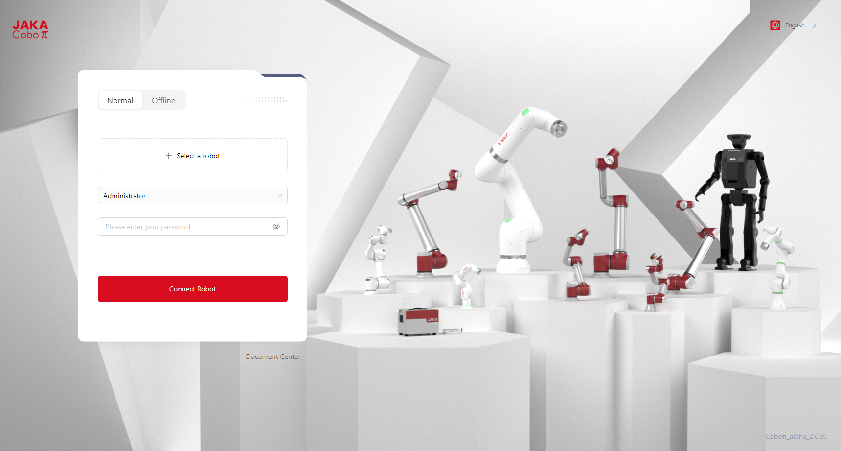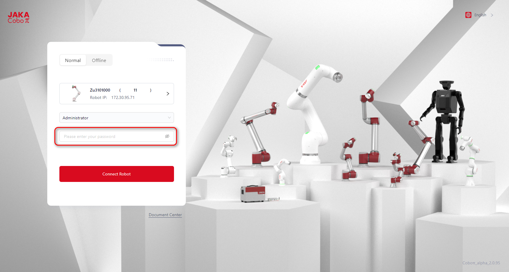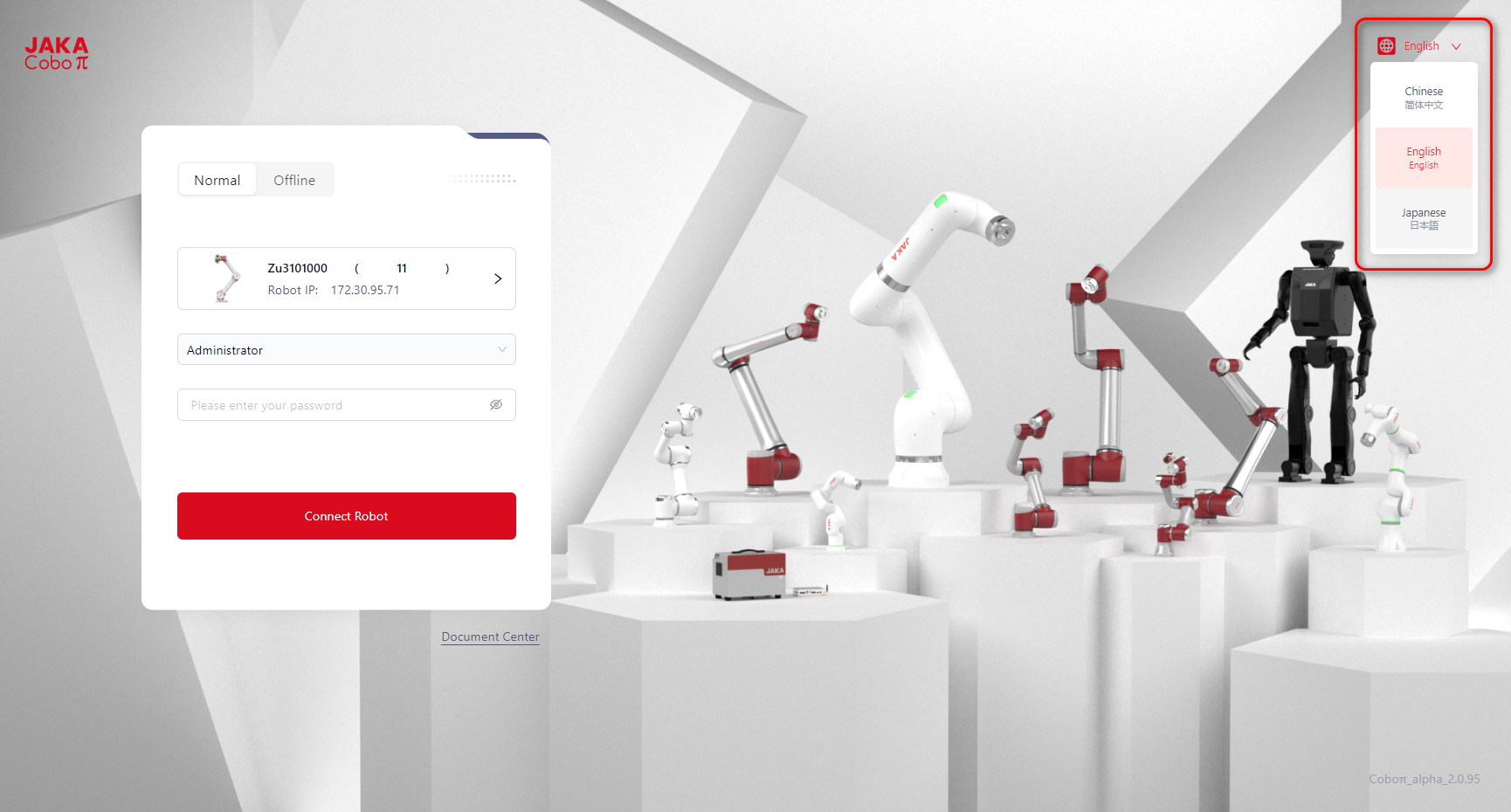 - Enter the robot's IP, select the role, and password. Click