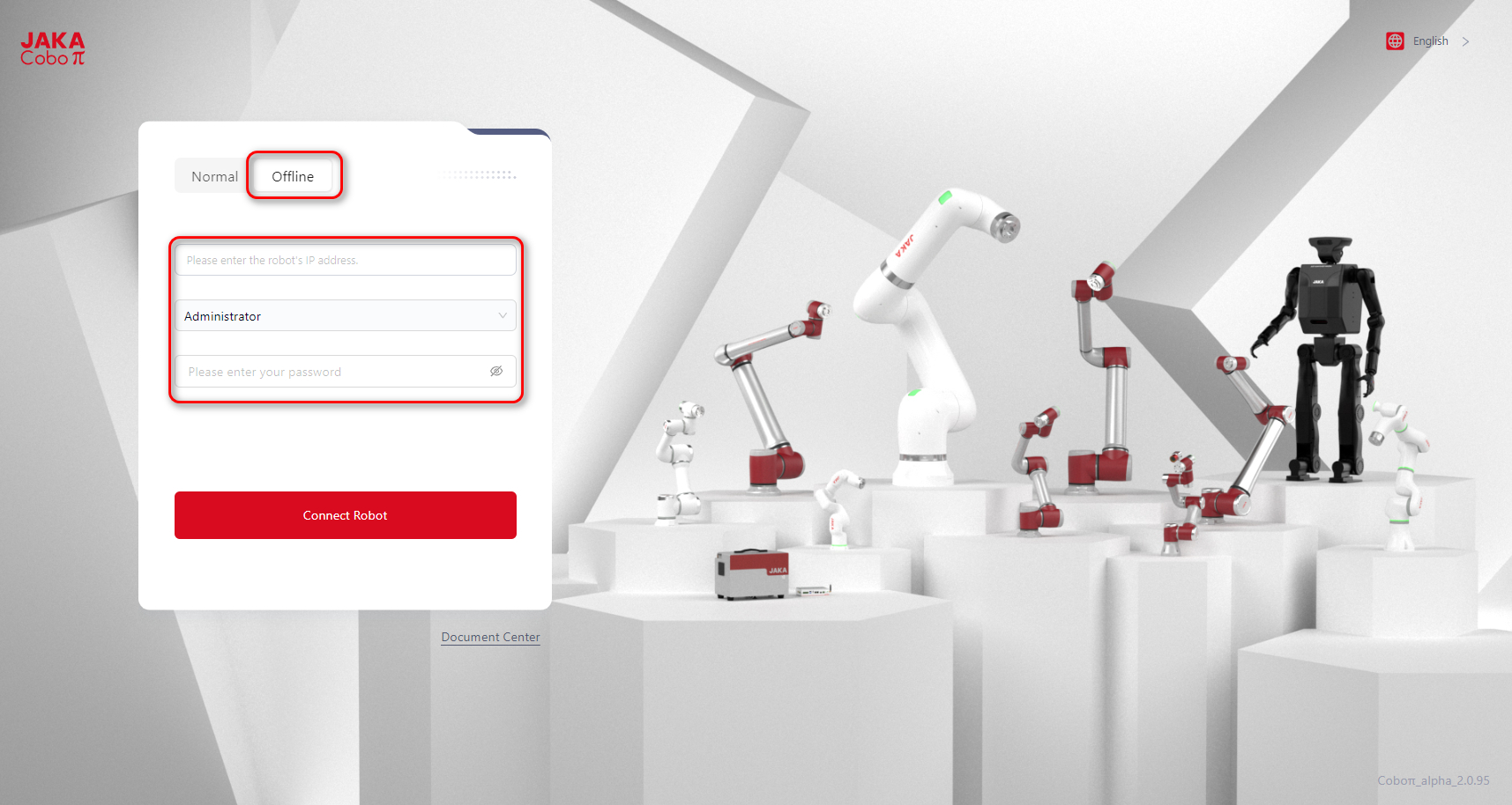 Once the installation package is downloaded, users can enter the trial code in the IP address field on the login screen. The trial code functions as the robot's IP address.