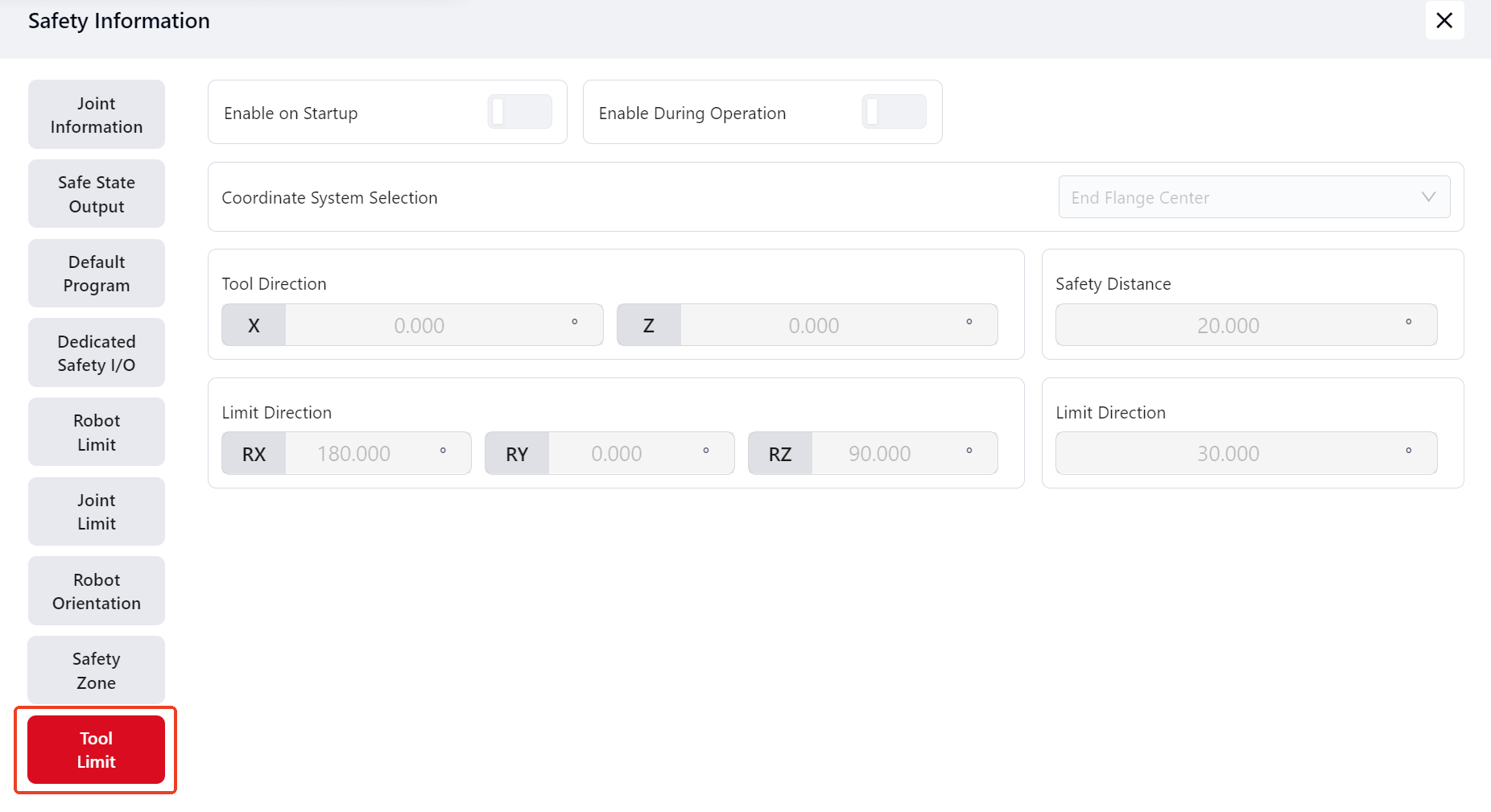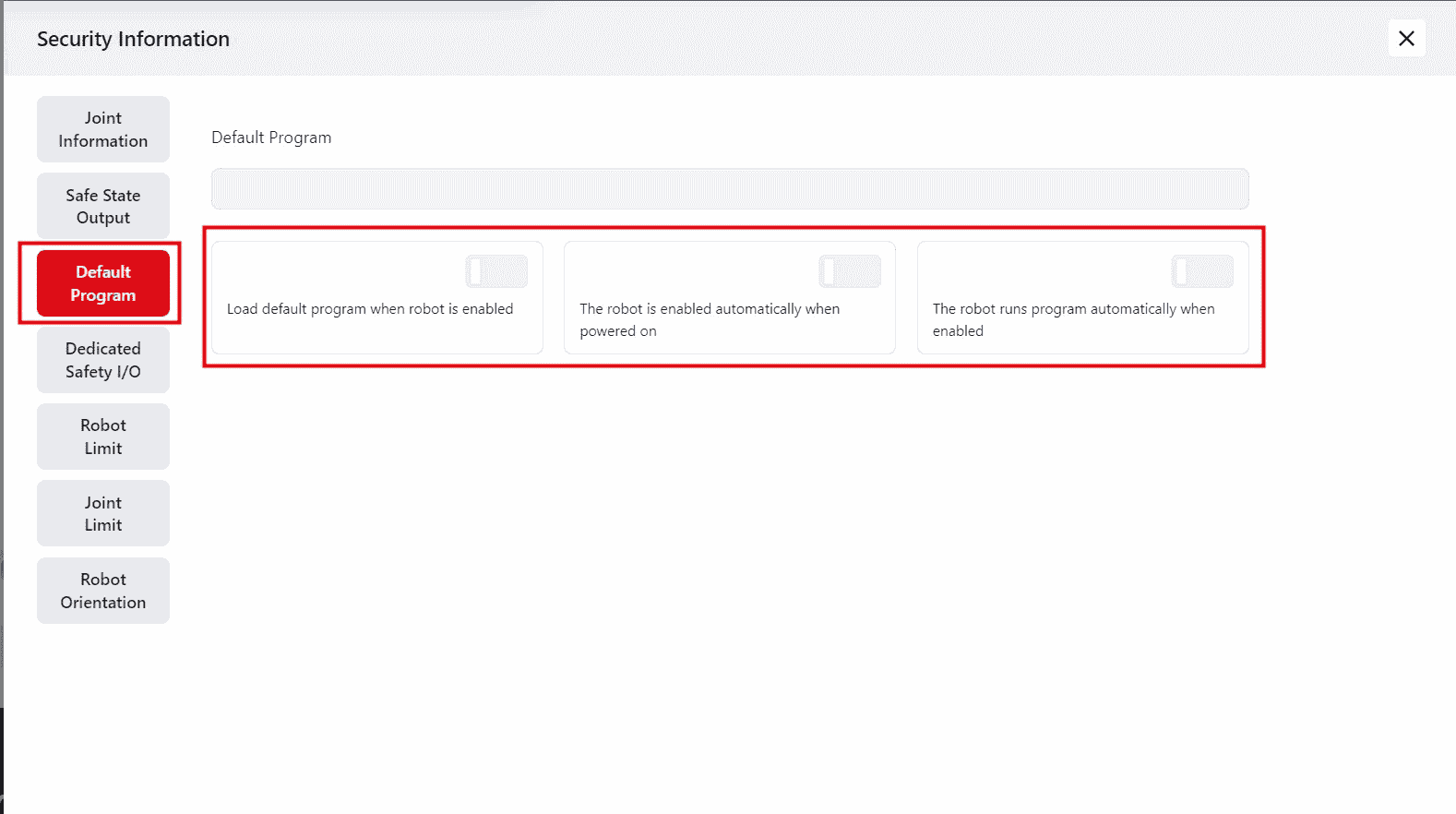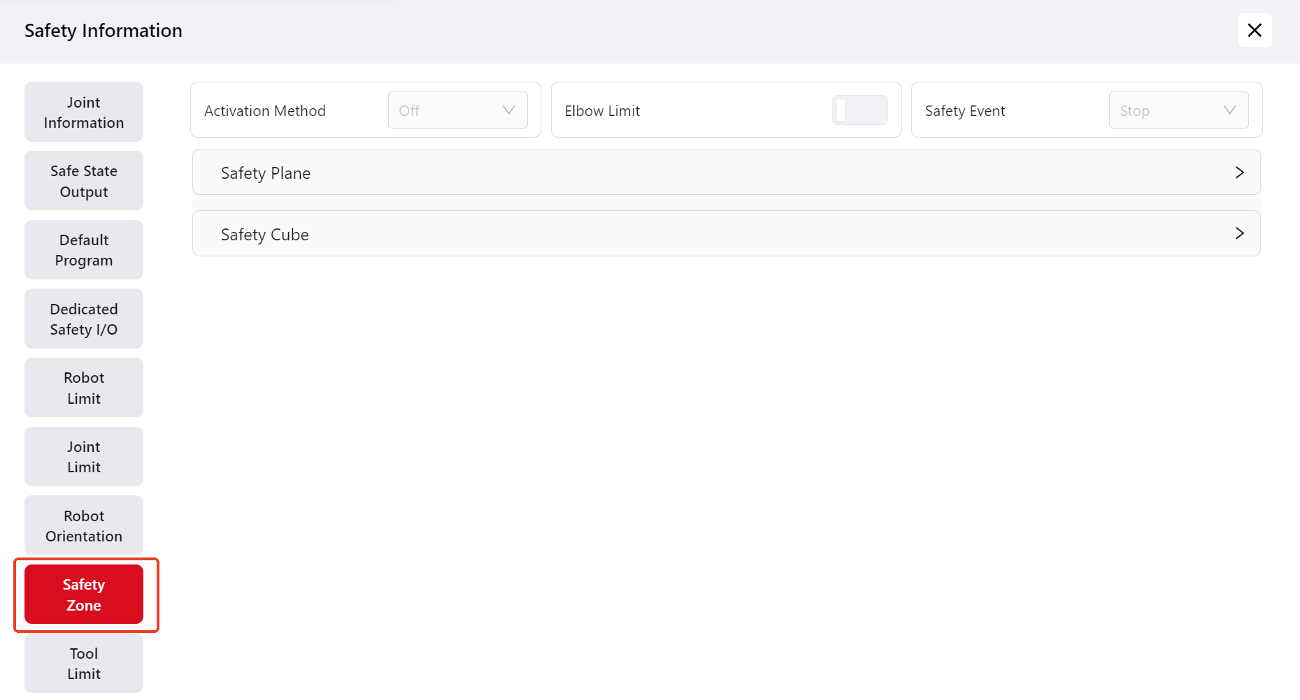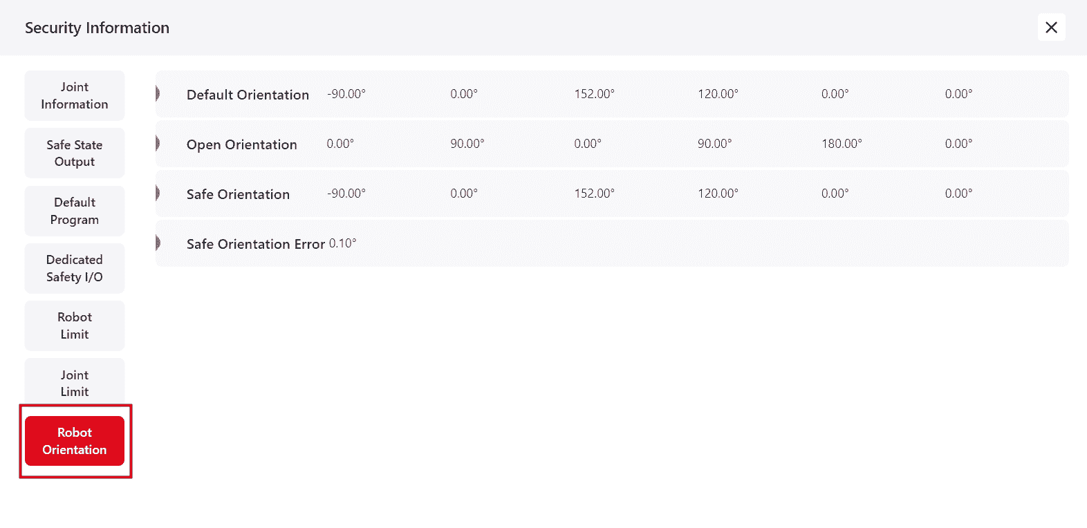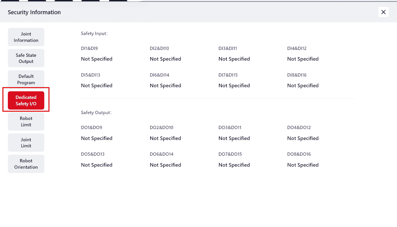 Click this icon to View the robot's safety information as follows: