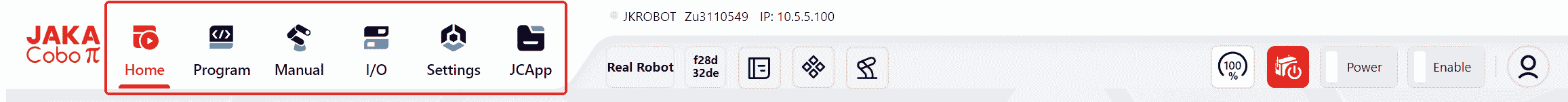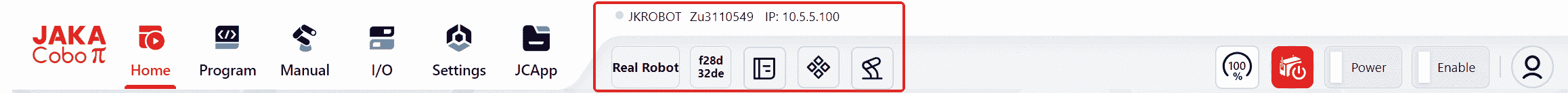 The icon will turn red, indicating that the robot is powered on and enabled.