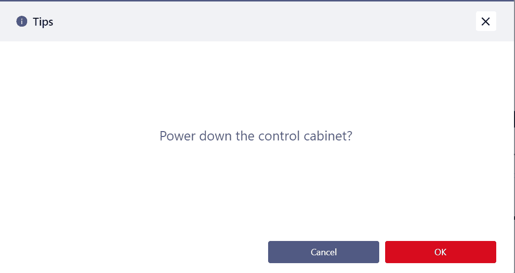 Powering down the control cabinet will also close the entire Coboπ system page.
