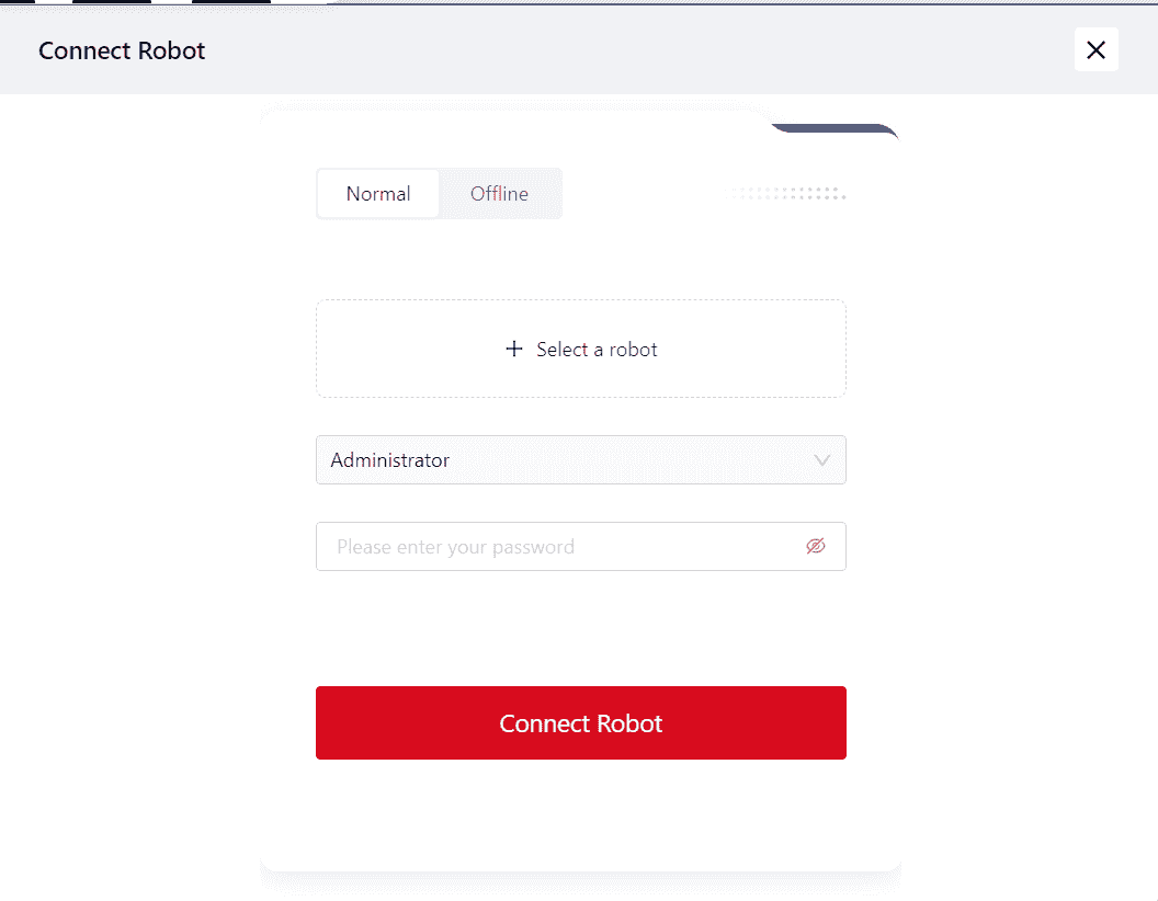 After clicking, the interface to connect to the robot will appear, with operations similar to the initial login.
