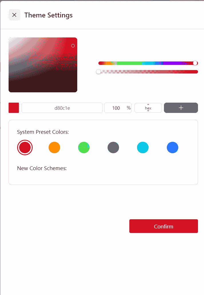 After selecting a color, click Confirm