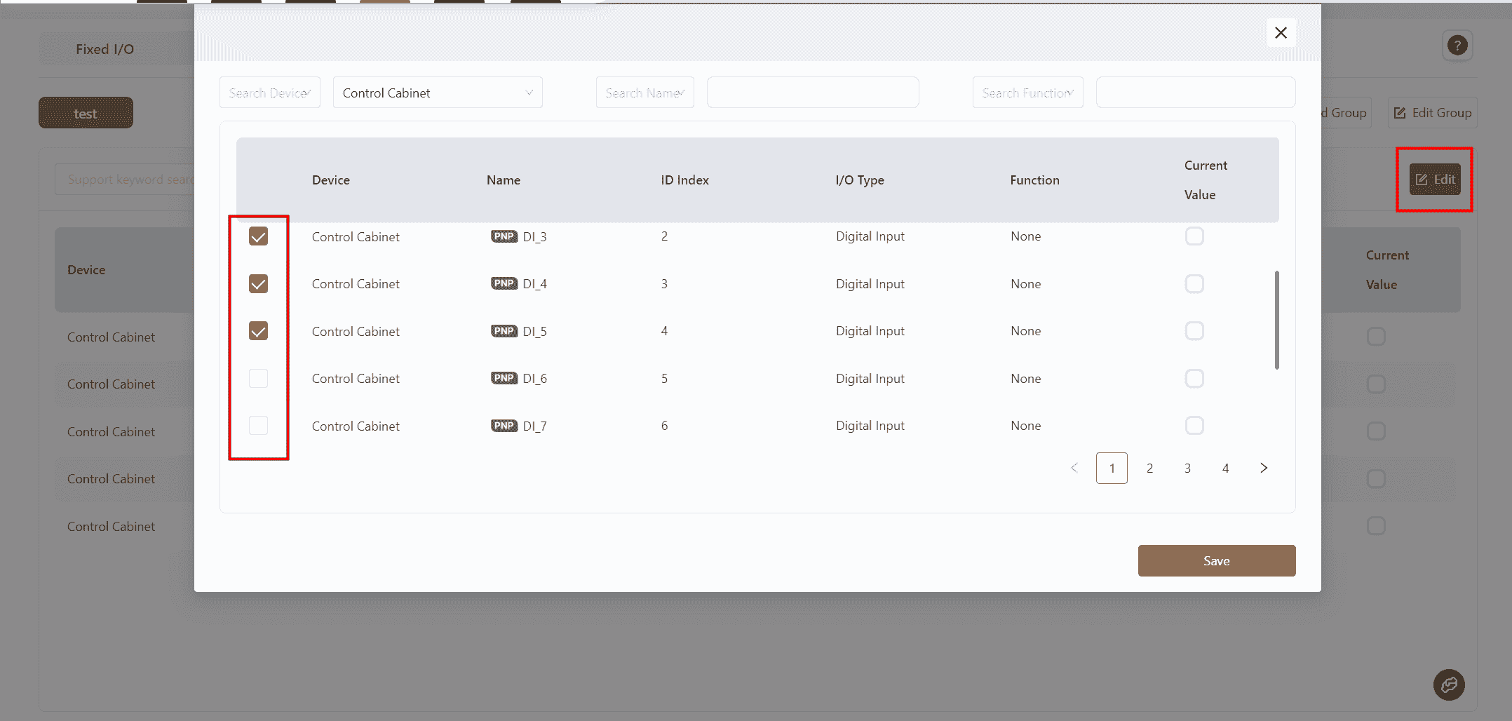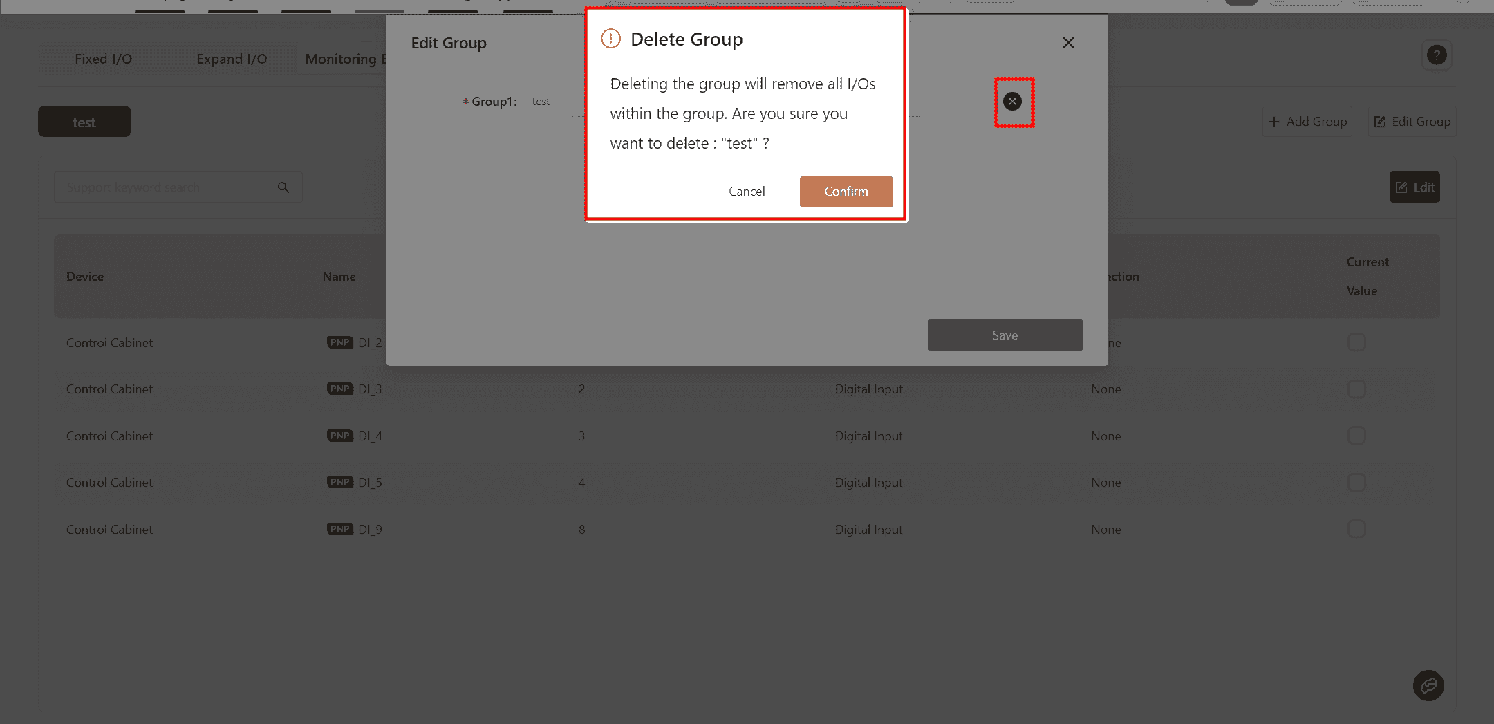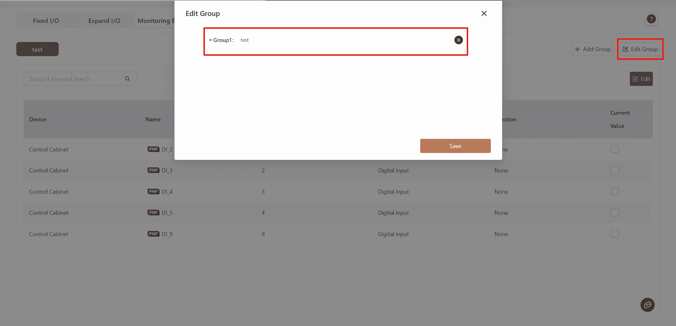 - After saving, the selected I/O will belong to the same group and be displayed on the same interface.