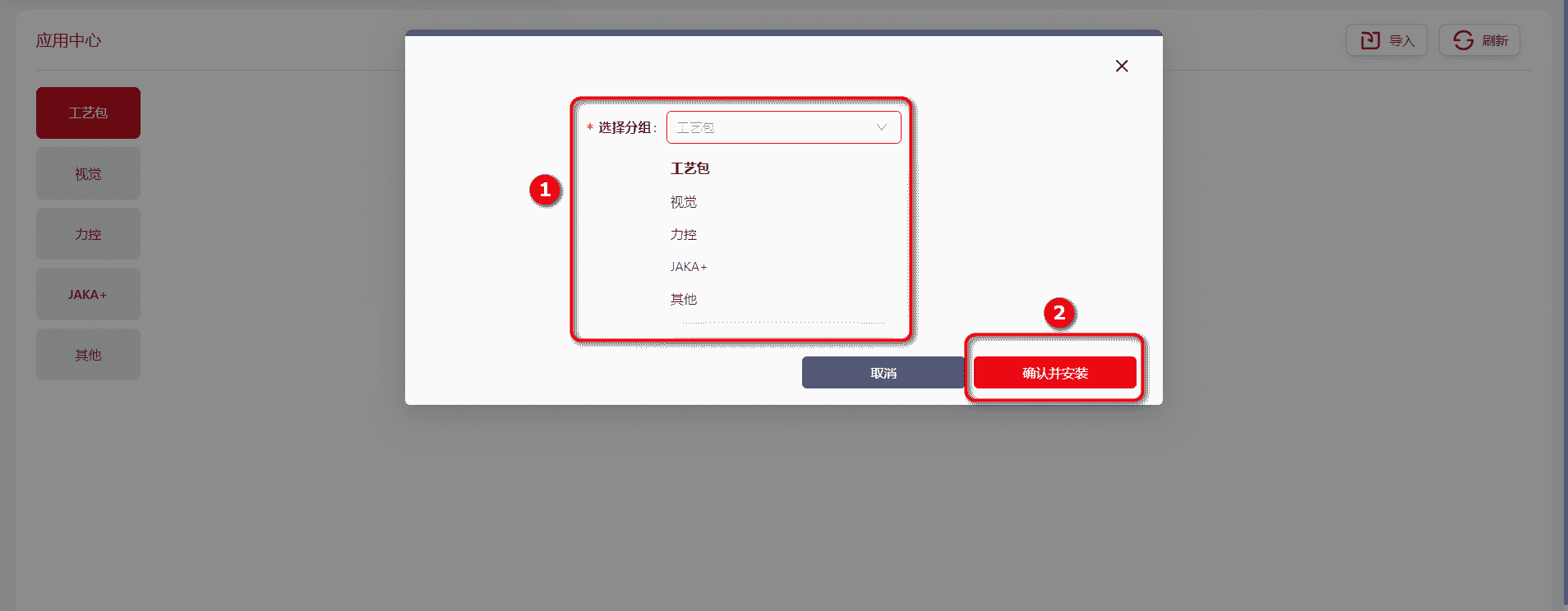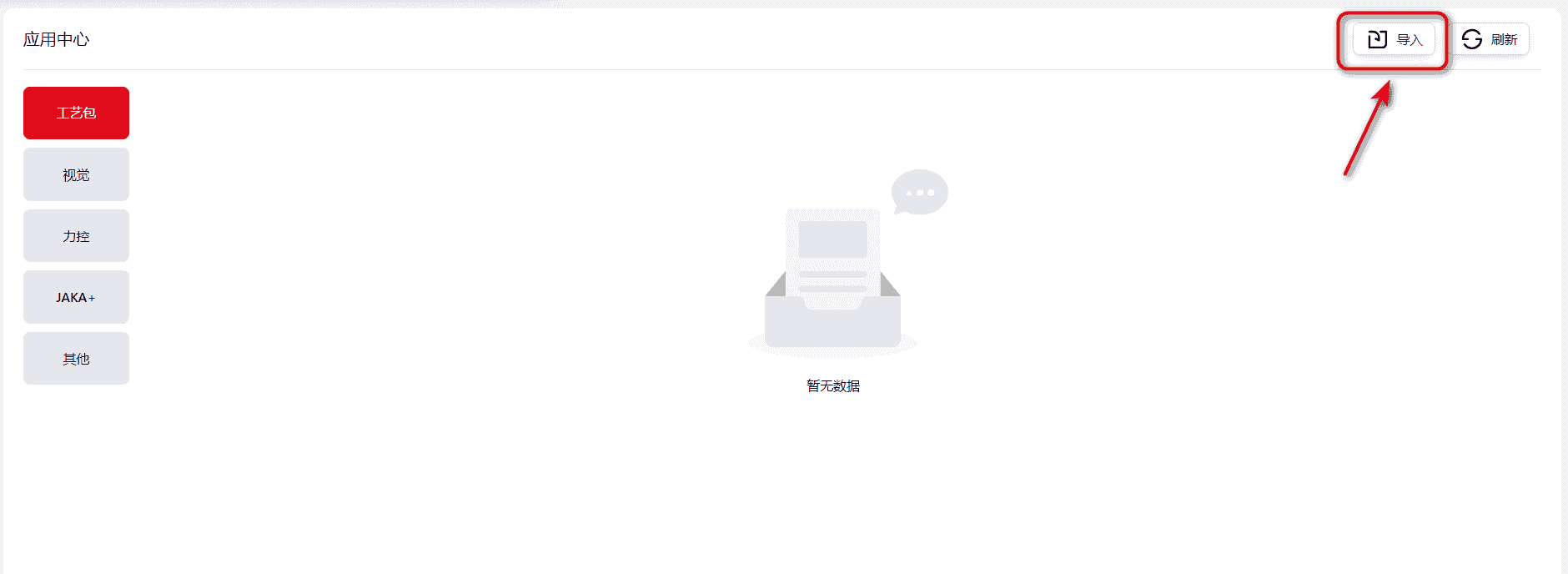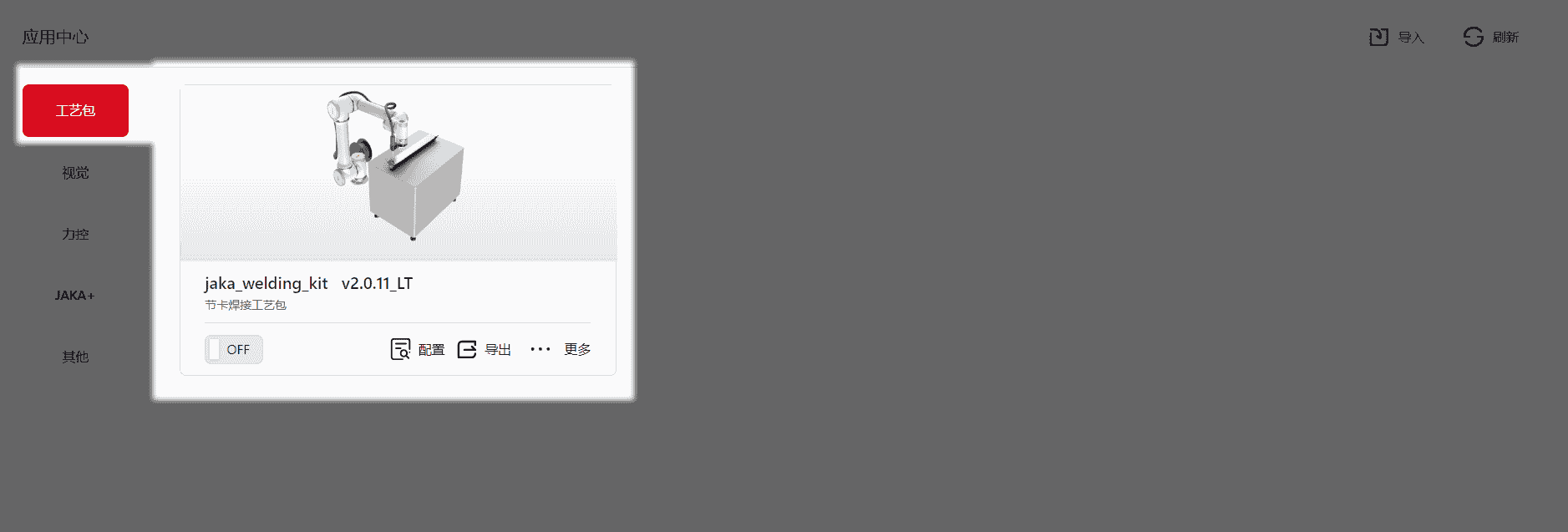 入口,内含四个JAKA已开发好的Addon包,用户可选择自己需要的包,下载至本地后,再上传即可使用。上传步骤与其他版本相同。