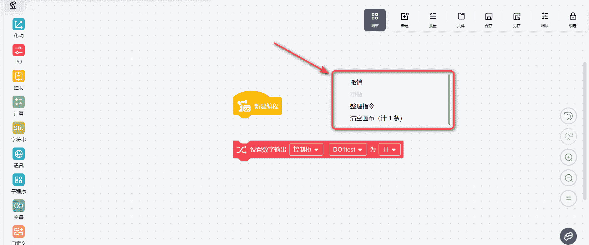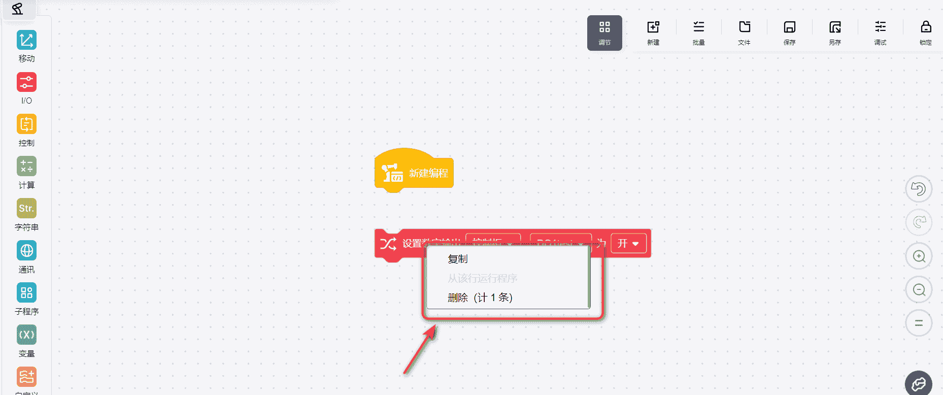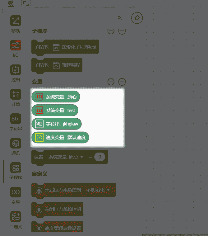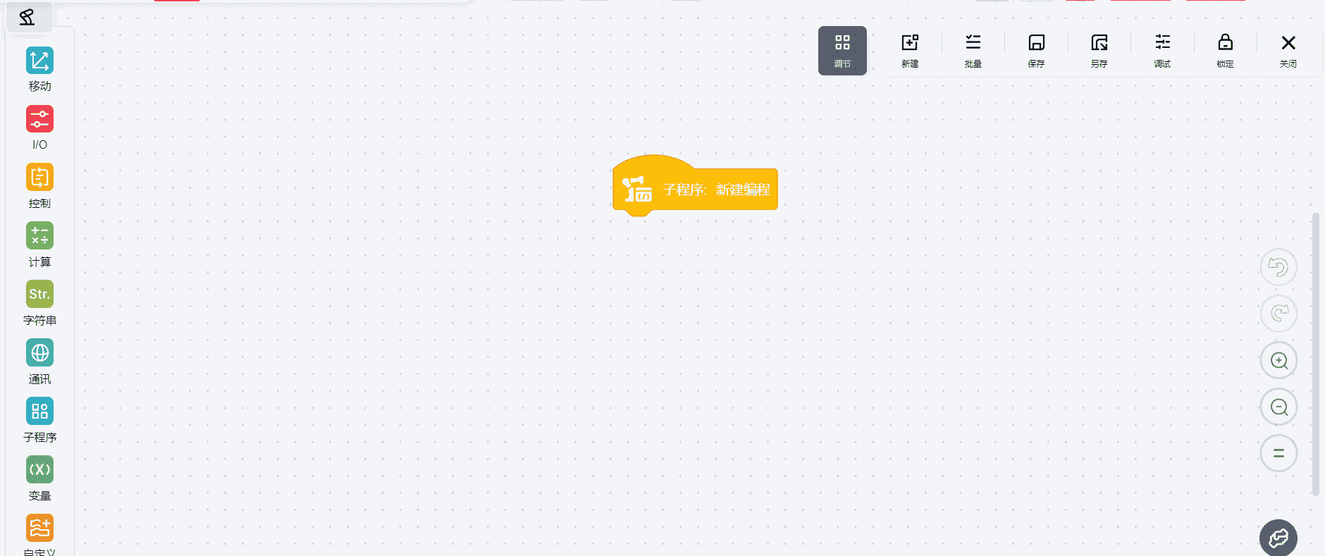若想编辑子程序,在子程序指令栏或主程序中点击目标子程序框,即可进入子程序编辑界面。