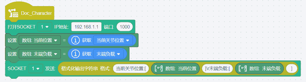 速度变量也可以通过SOCKET指令发送,发送内容为关节速度、关节加速度、直线速度和直线加速度。