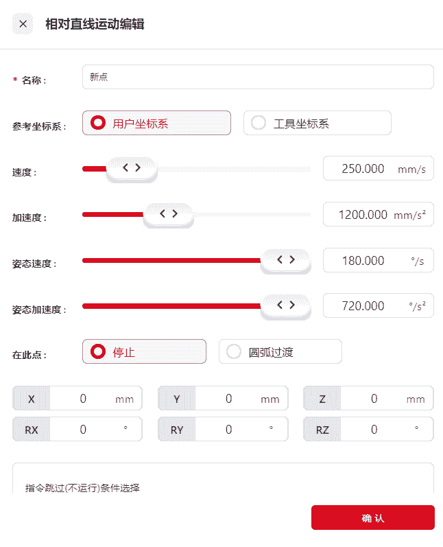 - 用法:选择工具坐标系,机器人末端位姿相对于工具坐标系;选择世界坐标系,机器人末端位姿相对于机器人基坐标系。