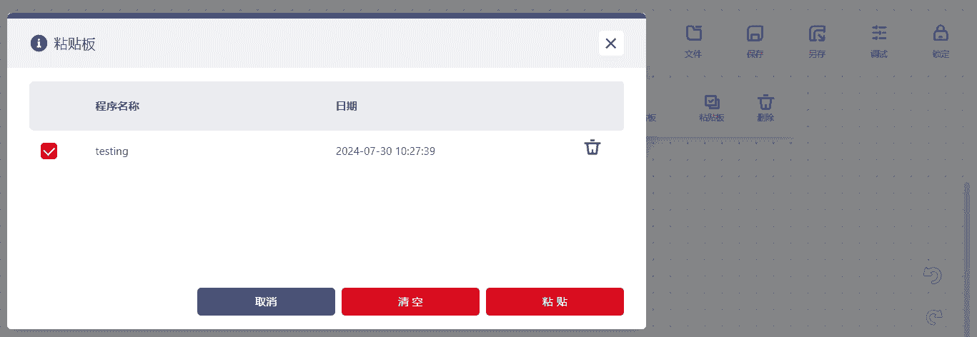 以退出子程序编辑页面、回到主程序页面。若子程序保存成功,则会作为一个与主程序相同的程序出现在操作页面,当把该操作页面的程序保存后,会在