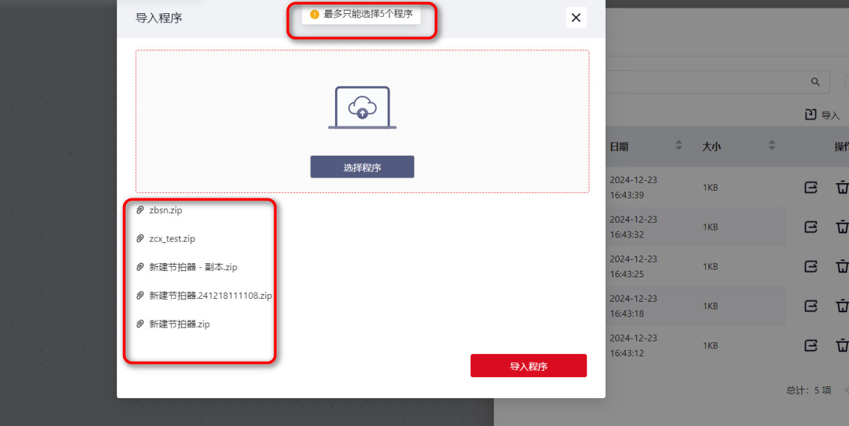 可支持多文件同时导入,每次导入的文件数最多为五个: