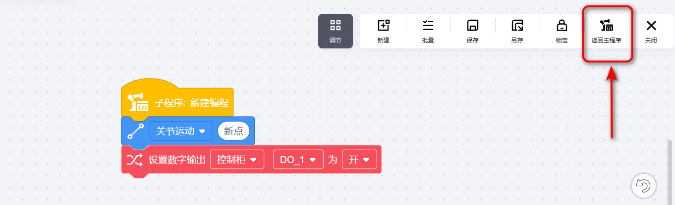 点击该按钮,即可一键返回当前子程序所属于的主程序页面。