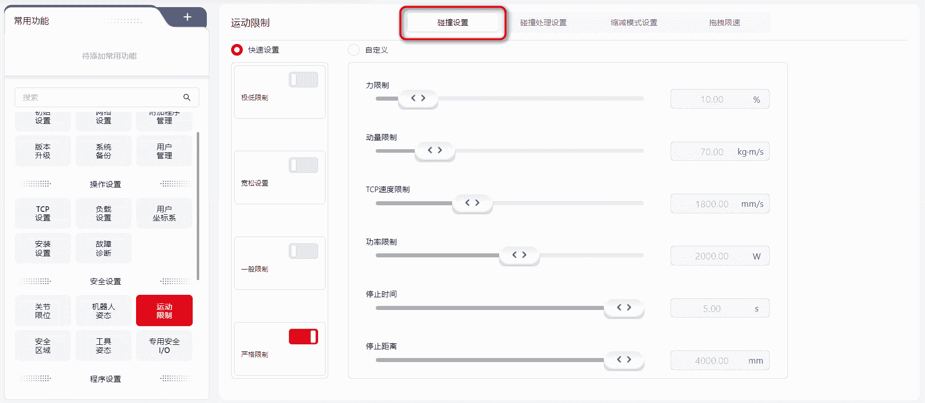 - 功能设置: 功能和设置方式与之前版本相同,但如果用的是S系列机器人,此处可设置S系列特有的相关功能: