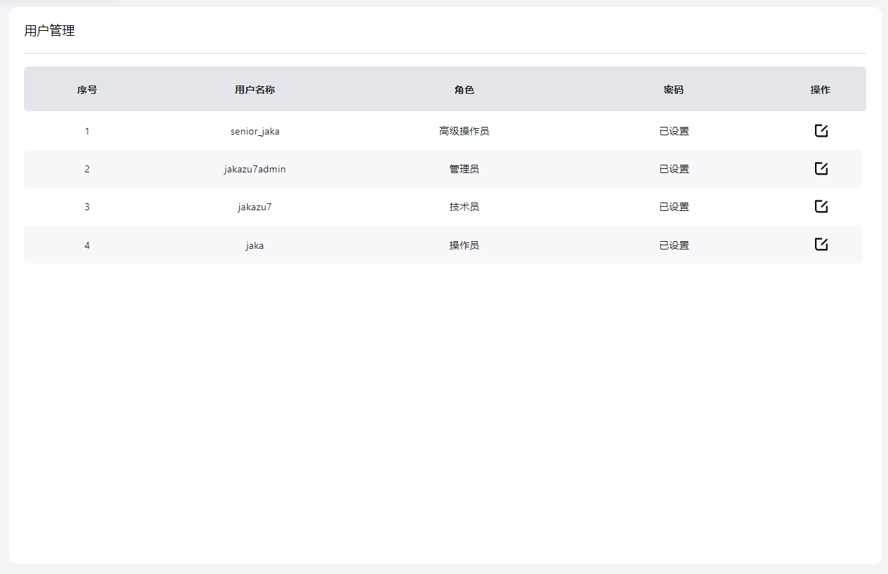请妥善保管修改后的密码,如遗忘,请联系JAKA技术人员恢复密码。