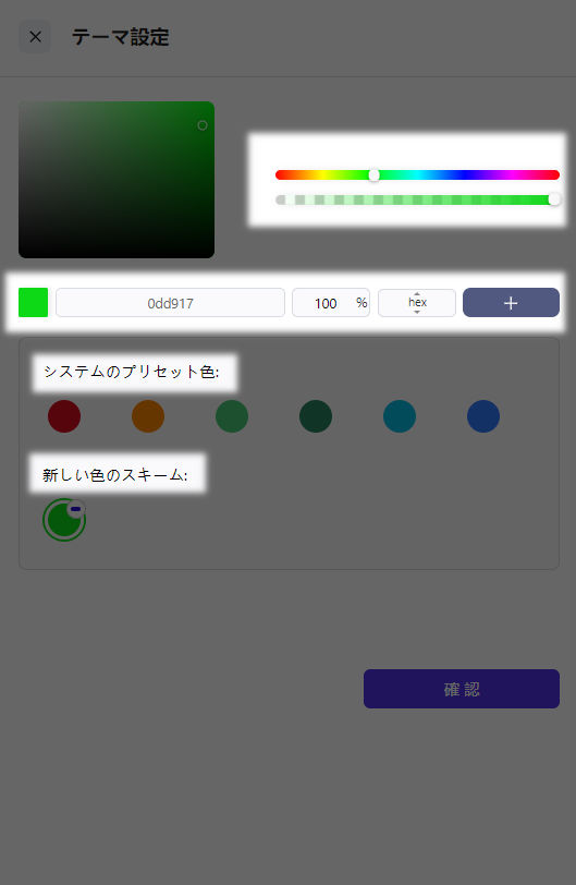 として保存します。保存したカラーは、カラーアイコンの右上隅にあるボタンをクリックすることで削除できます。