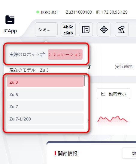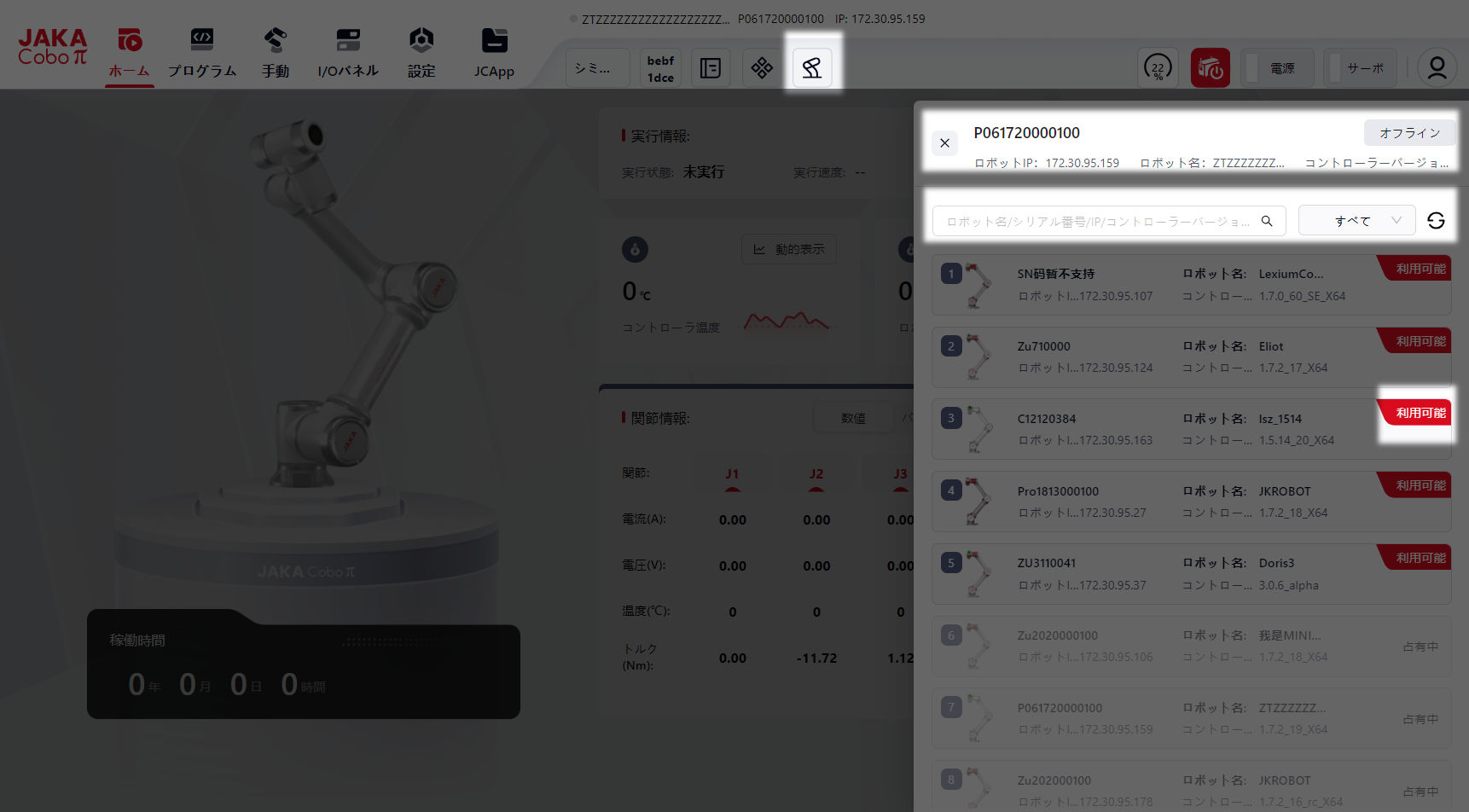 このアイコンをクリックして、別のロボットに切り替えて接続します。