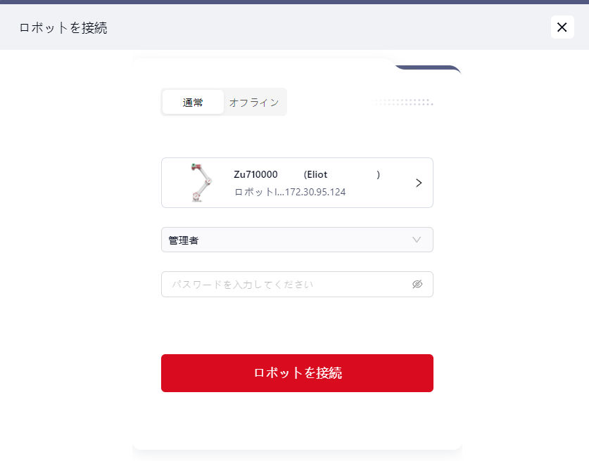 クリック後、ロボットに接続するためのインターフェースが表示され、操作は初回ログイン時と似ています。