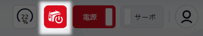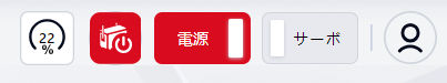 このアイコンをクリックしてロボットの電源を入れ、有効化します。アイコンは初めに灰色で表示され、ロボットがまだ電源が入っておらず、有効化されていないことを示しています。