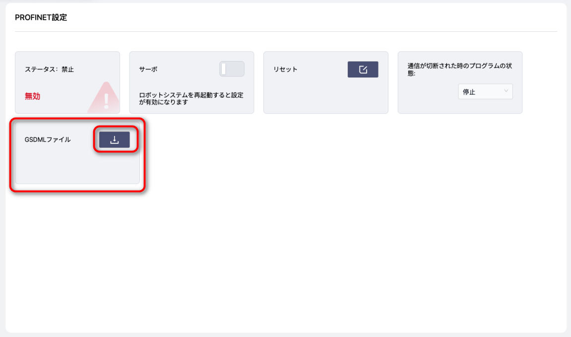 この操作を実行する前に、ロボットが電源オフで無効になっていることを確認してください。