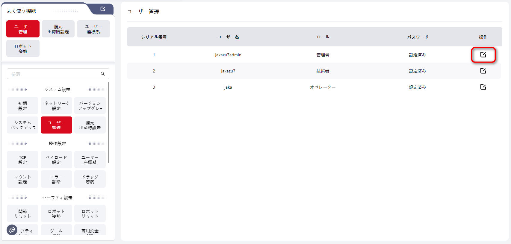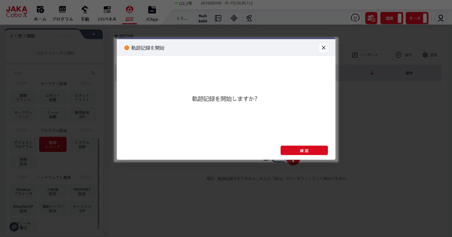 新しいパスワードは安全に保管してください。パスワードを忘れた場合は、JAKAの技術サポートに連絡してリセットを依頼してください。