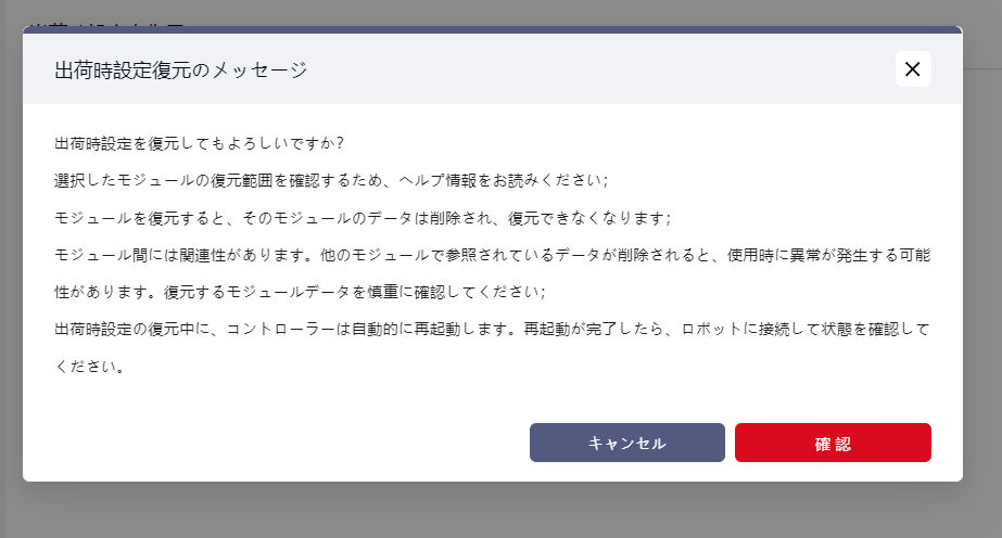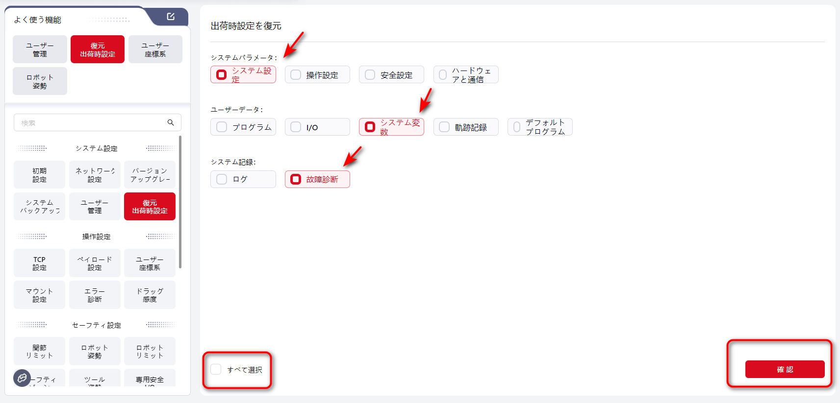 このインターフェースでは、ユーザーが特定のオプションを選択して工場出荷時設定に復元することができます。すべて選択