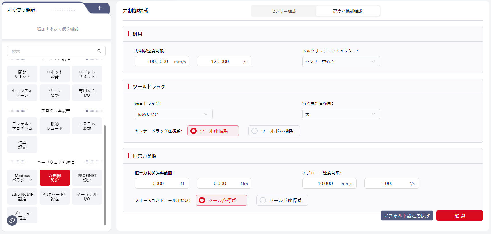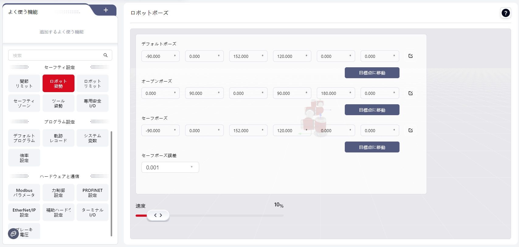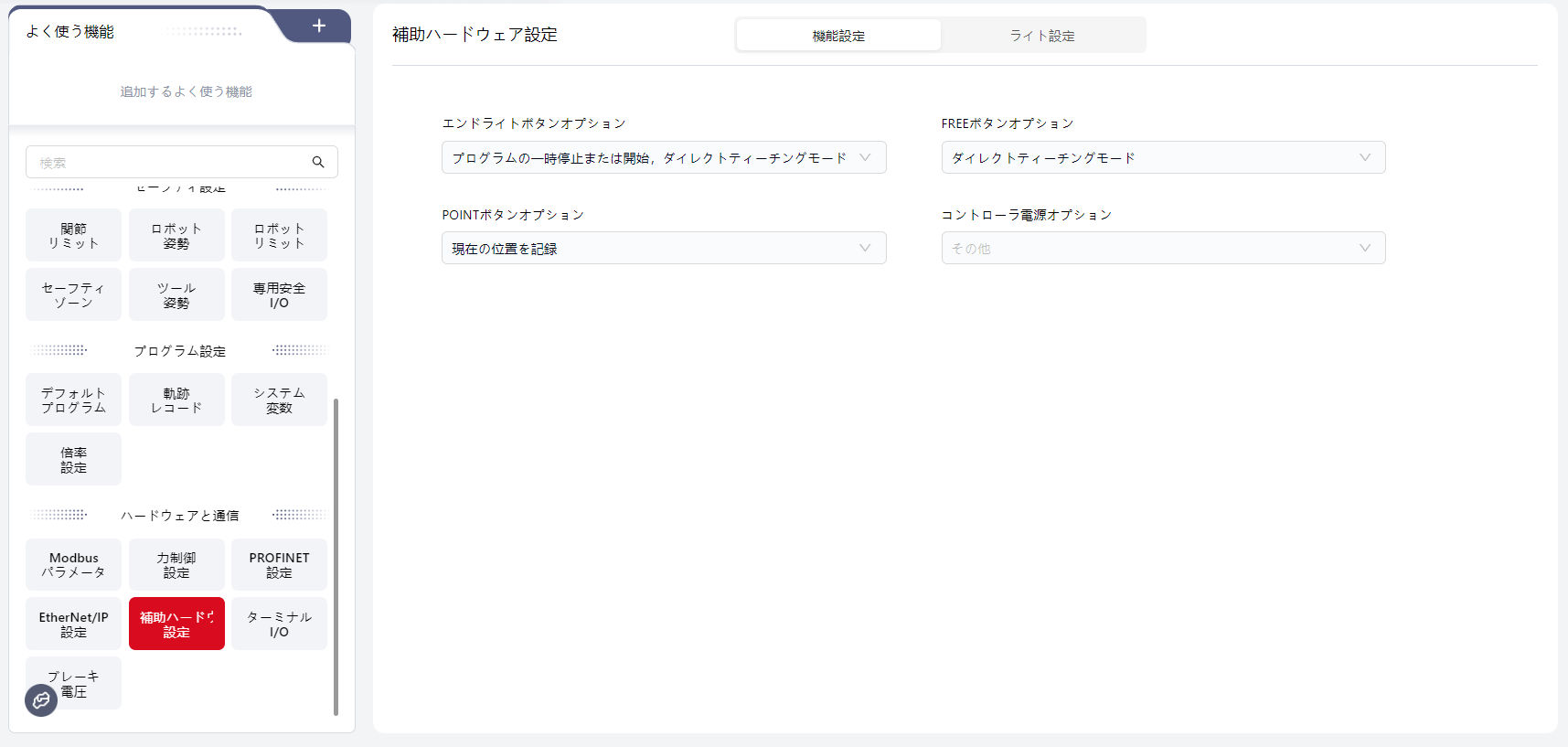 機能設定: 機能と設定方法は前のバージョンと同じですが、Sシリーズロボットを使用している場合は、Sシリーズ専用の特定の機能をここで設定できます。