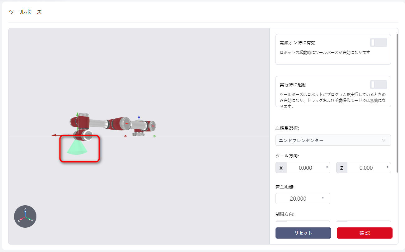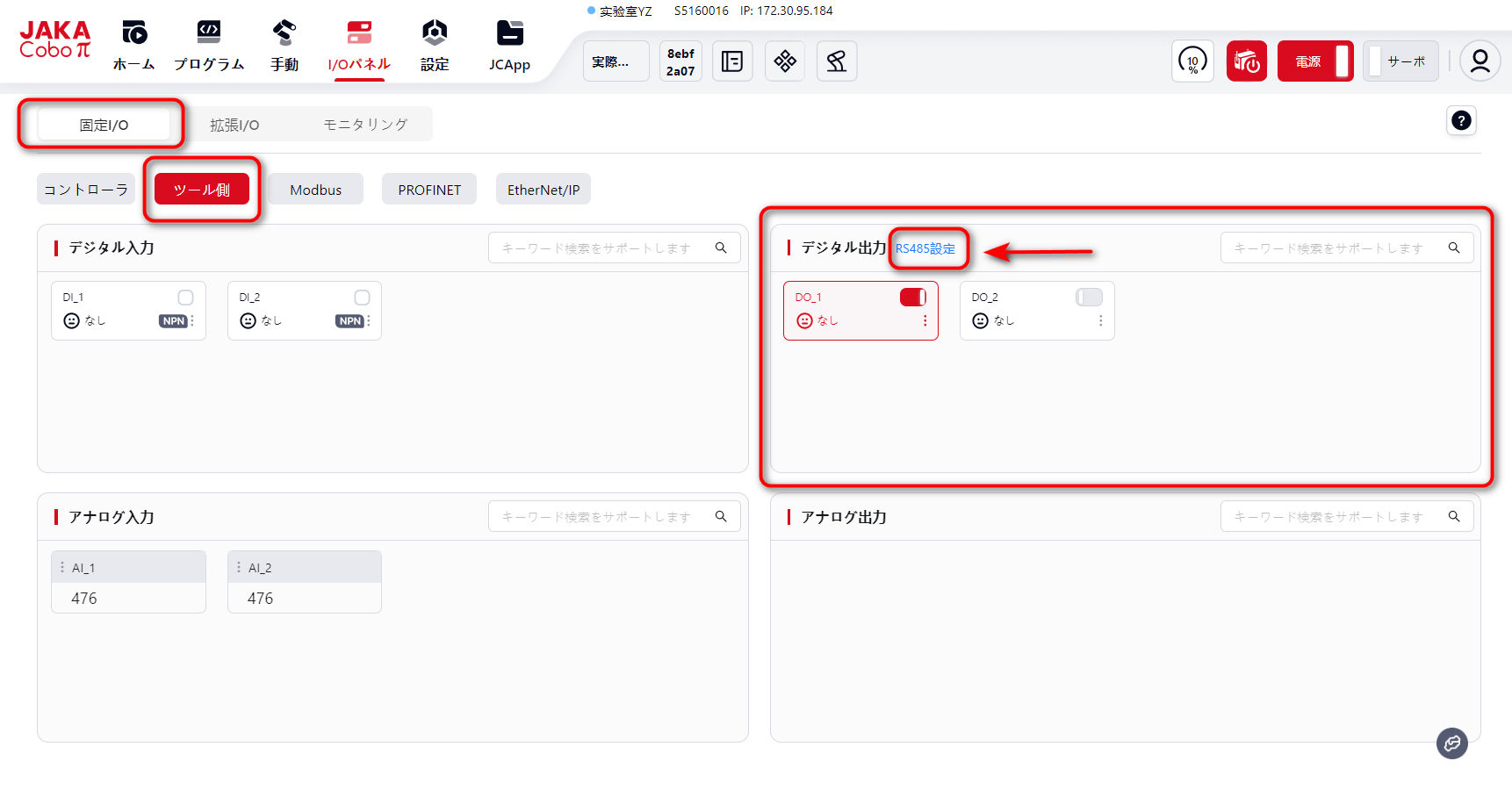 エンドツールを接続した後、ロボットが電源オンかつ無効の状態のときに、I/Oパネル