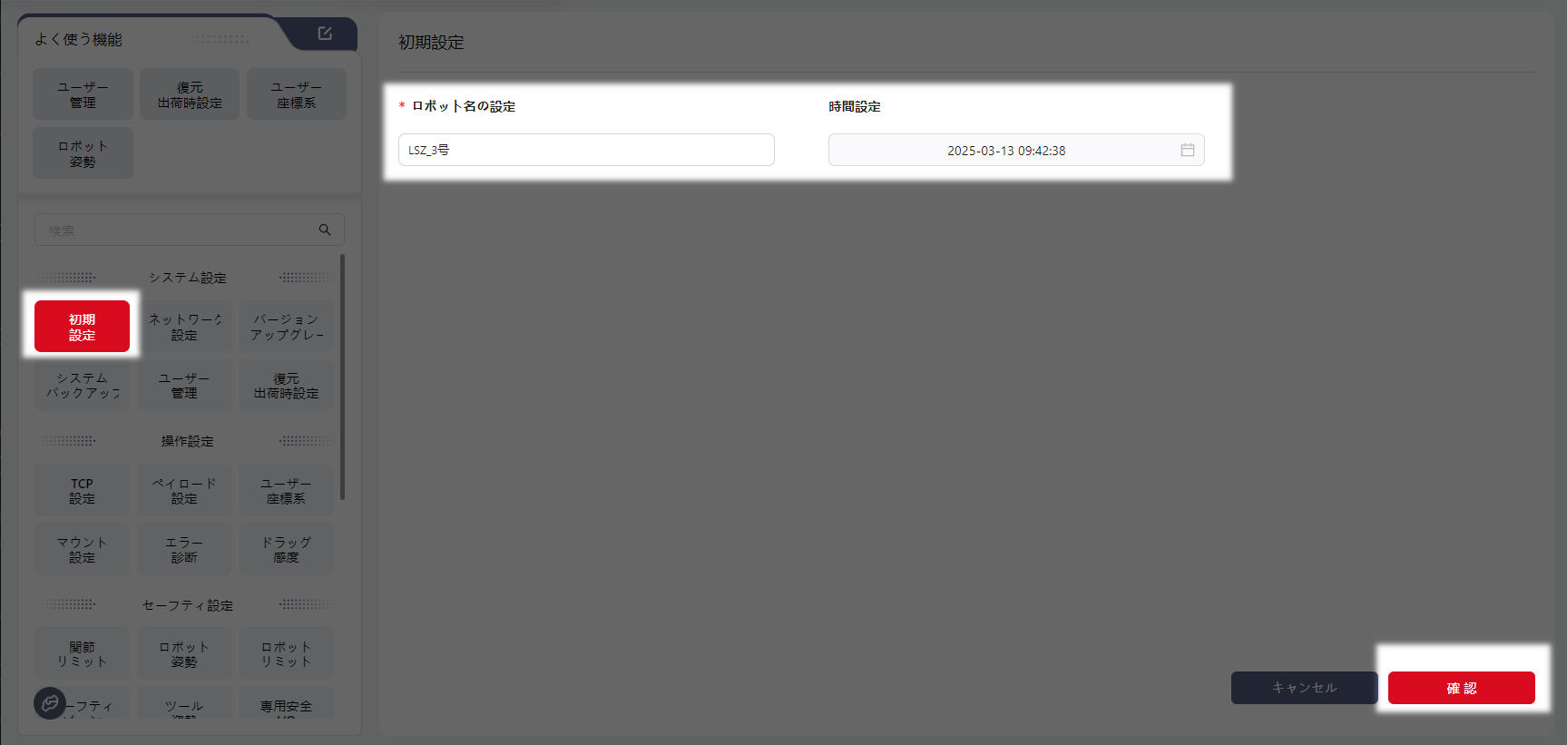 このインターフェースでは、ロボット名 と 時刻 を設定できます。