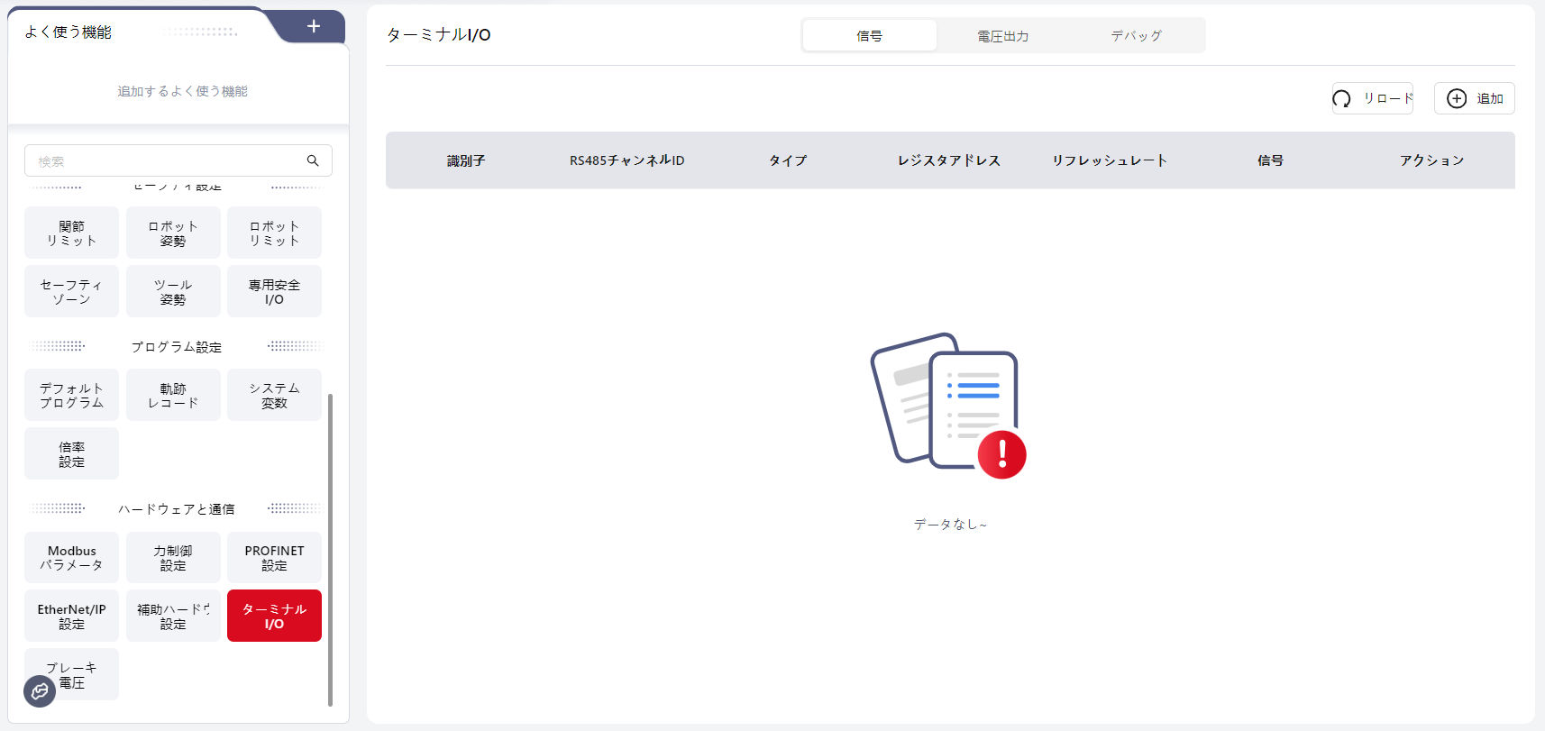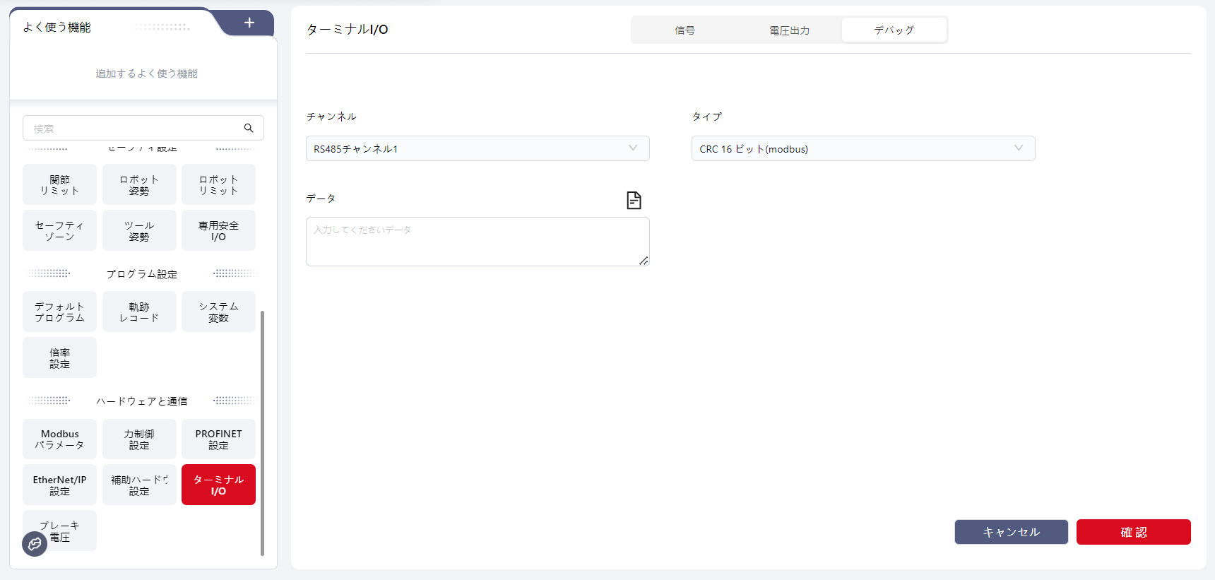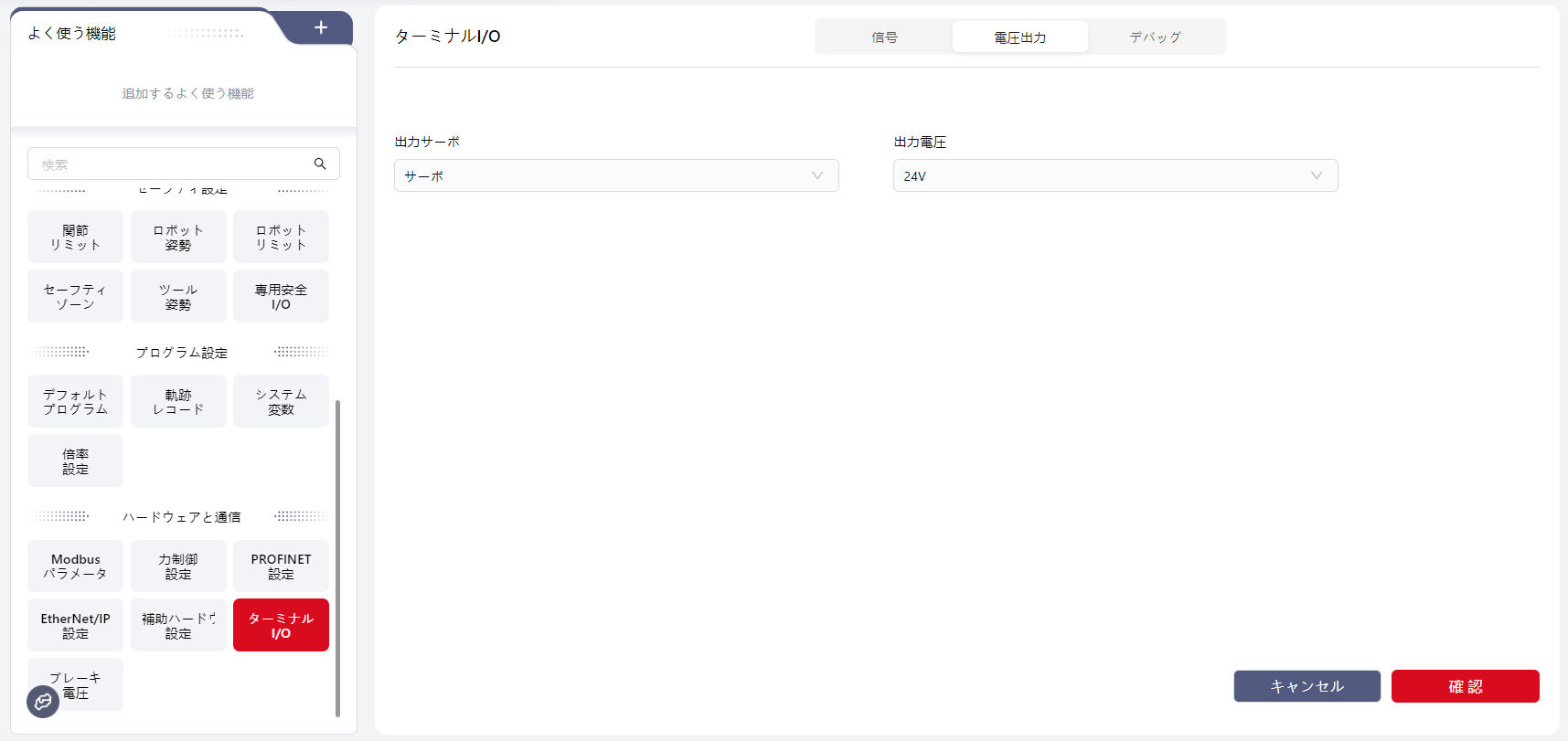 ツール端末TIOには端末電力出力機能があり、ユーザーは電圧出力の有無を選択し、出力電圧を12Vまたは24Vに設定できます。