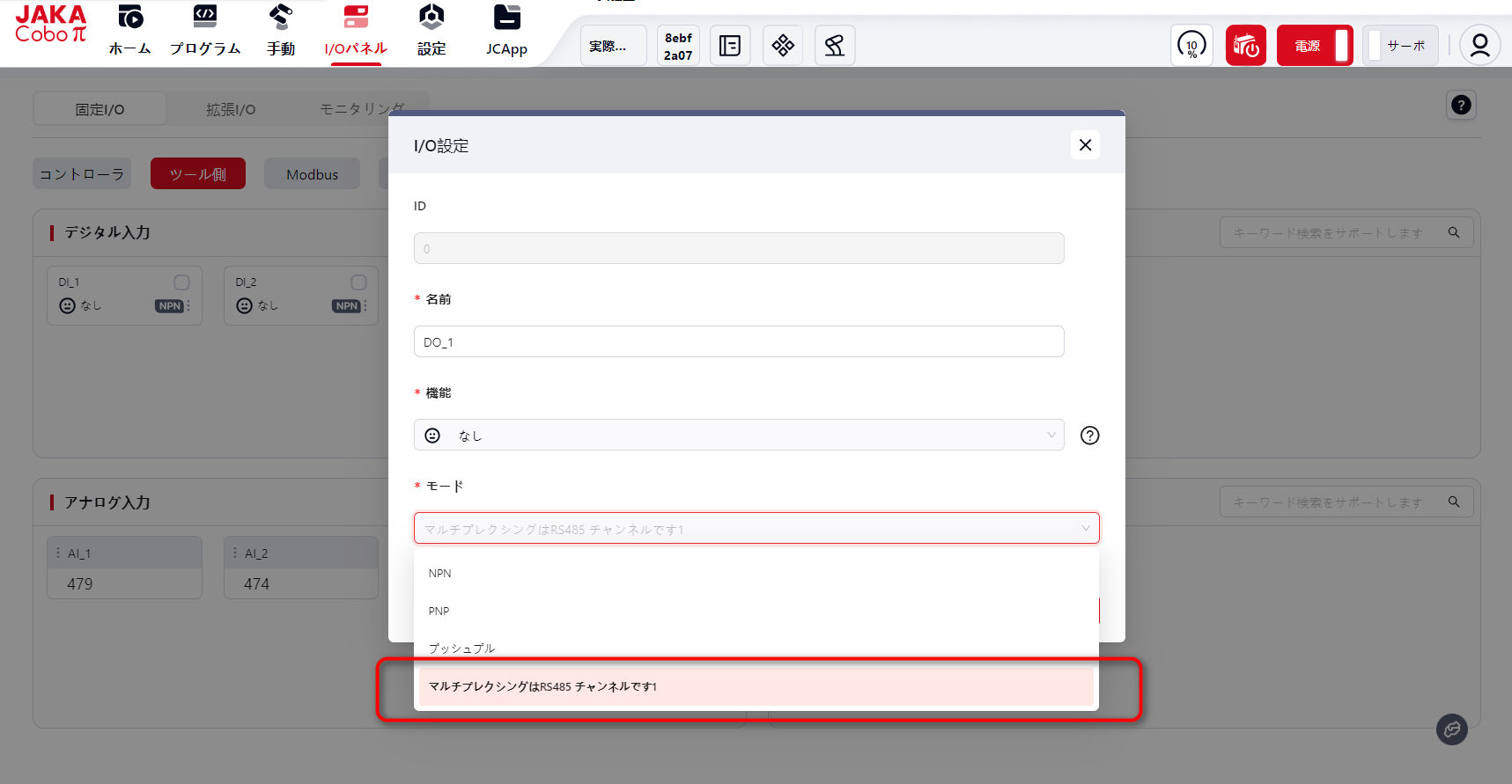 で、DOを選択し、その機能を RS485チャネル1として再設定