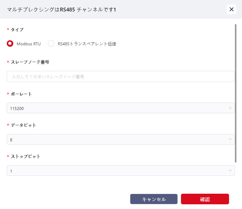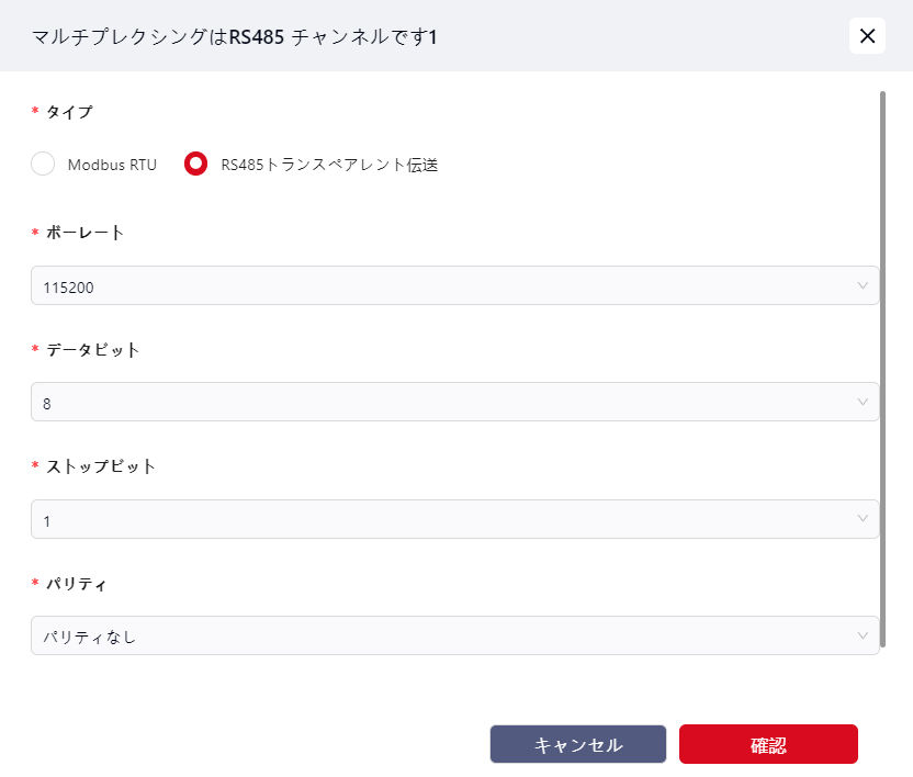 ボタンが表示され、RS485チャネルの設定インターフェースにアクセスできます。