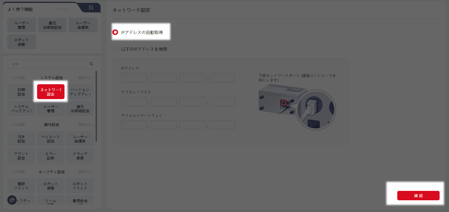 デフォルトでは、ロボットはIPアドレスを自動的に取得するように設定されています。