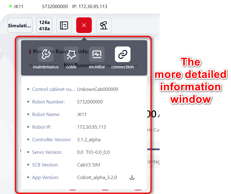 Clicking of this icon will pop up a window displaying the robots the user can switch to.