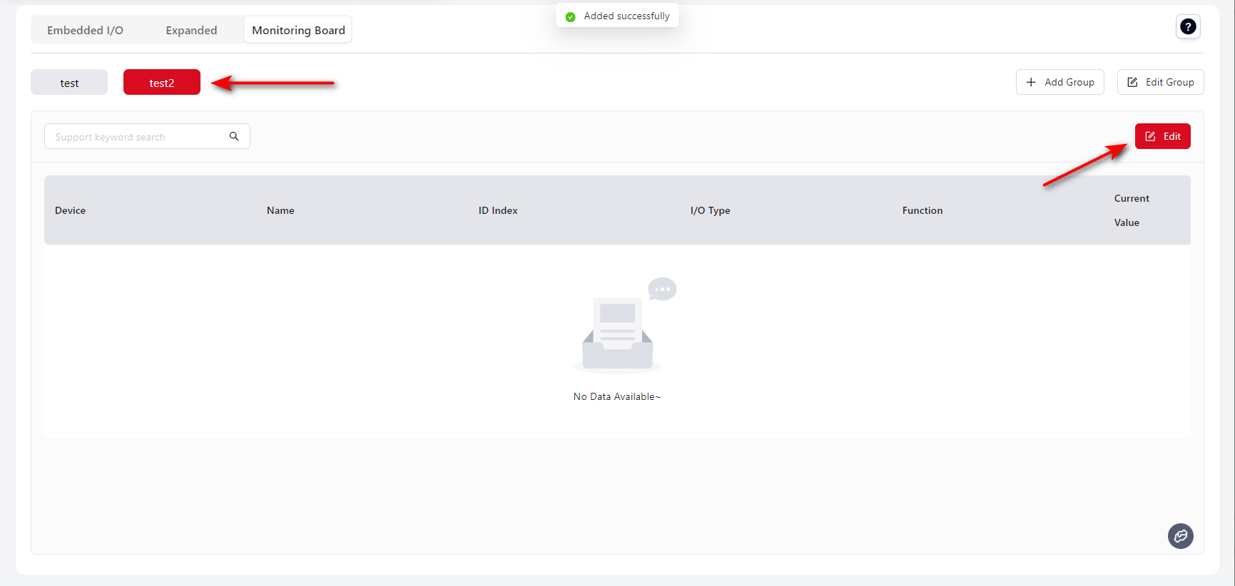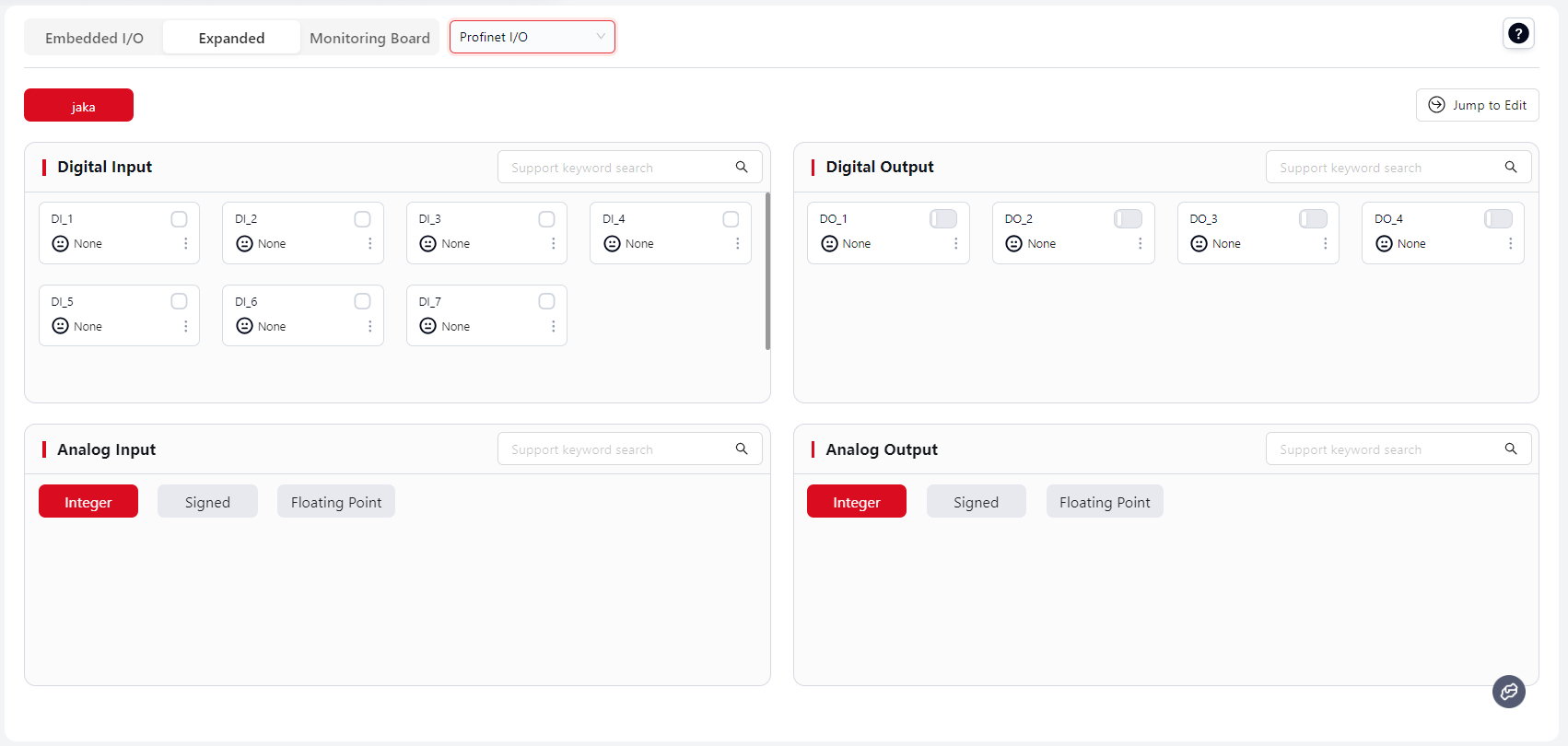 Users can add existing Fixed I/O and Extended I/O here for unified monitoring while running programs.