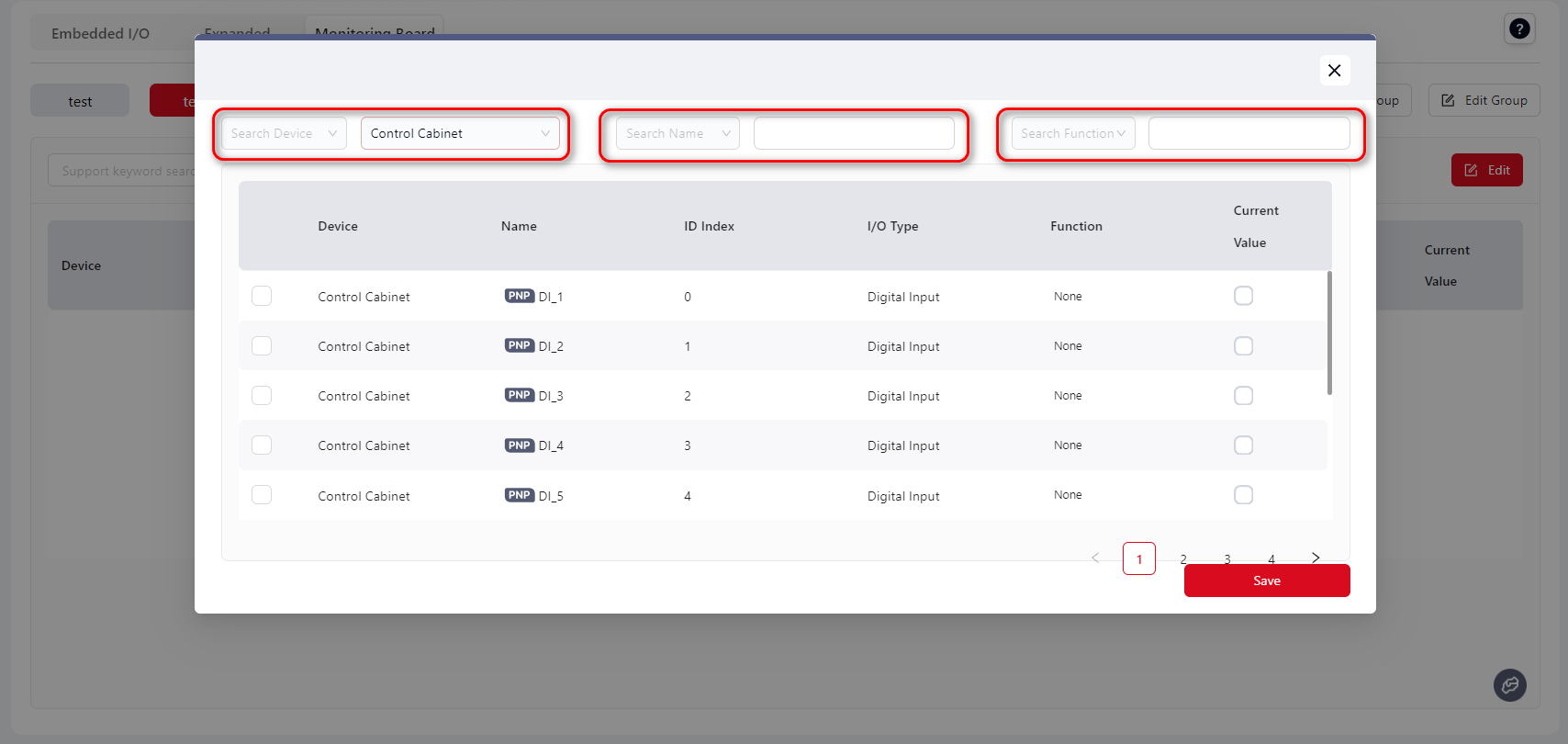 You can choose the device type in the Device dropdown, or search by keyword in Name or Function.