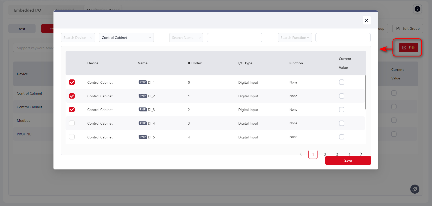 The DI/DO interface allows monitoring of Modbus digital input states.