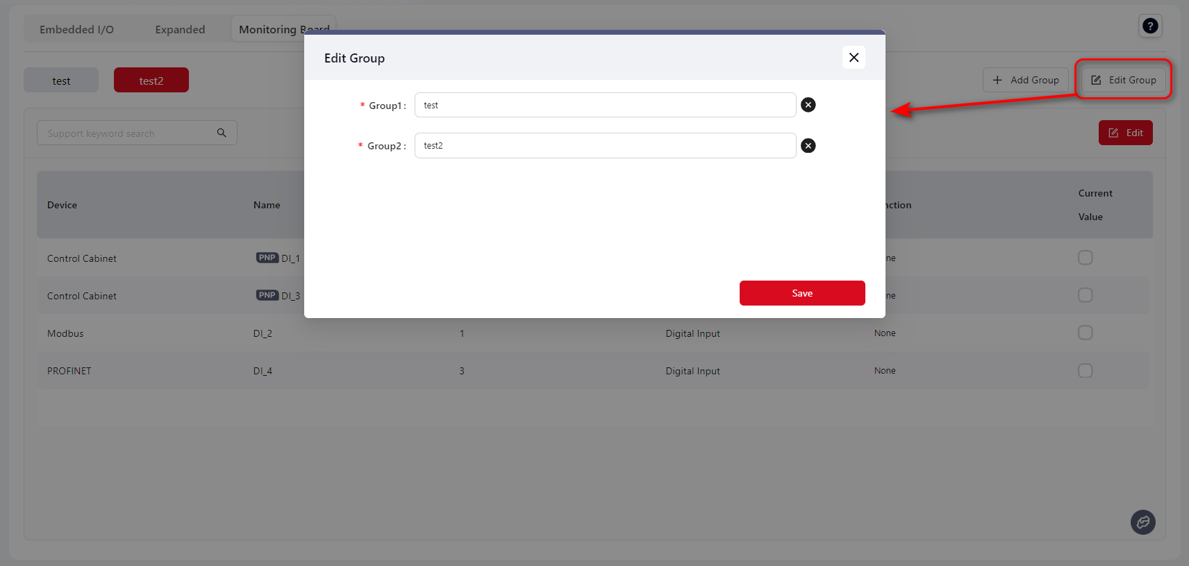 - After saving, all selected I/O will belong to the same group and be displayed on the same page.