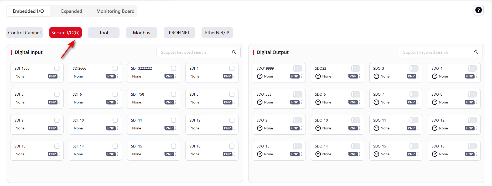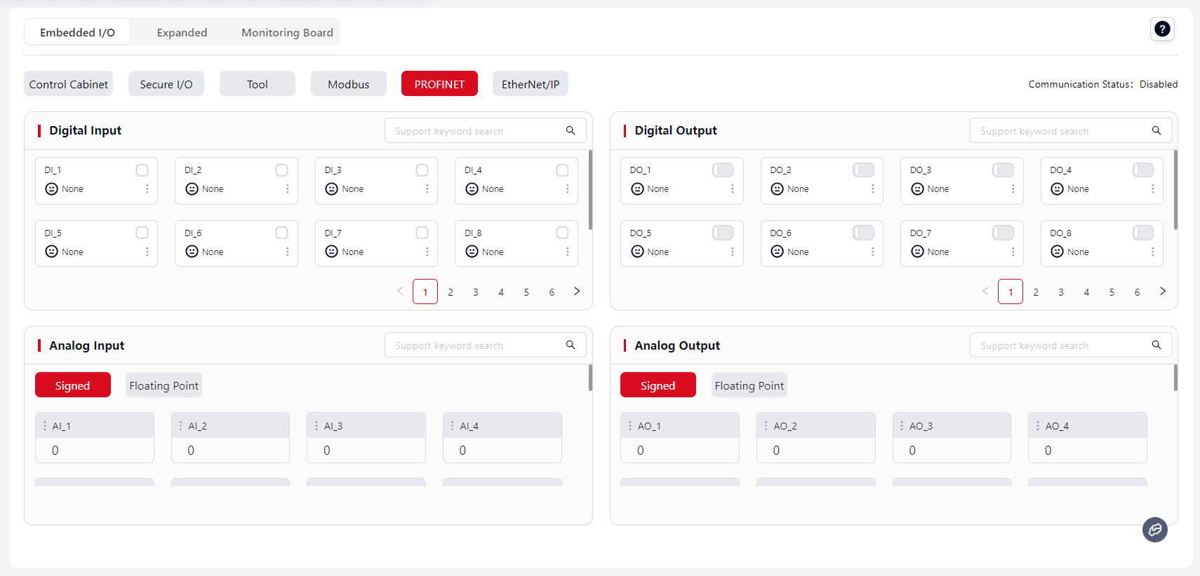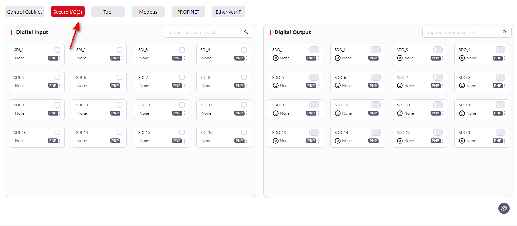 Supported functions and setup methods are the same as Cabinet Digital Input and Cabinet Digital Output.