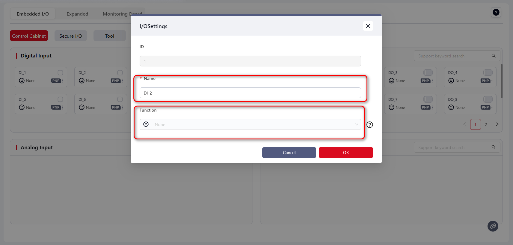 Configuration method is the same as Cabinet Digital Input.