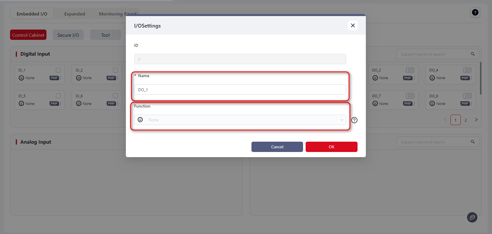 Configuration method is the same as Cabinet Digital Output.
