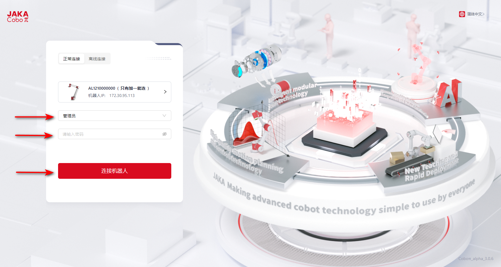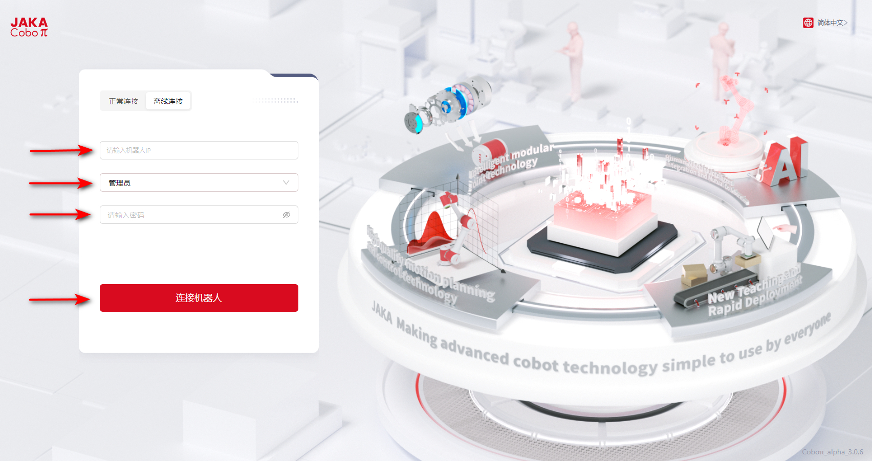 当无法在列表中找到目标机器人IP时,用户可选择此方式连接机器人。