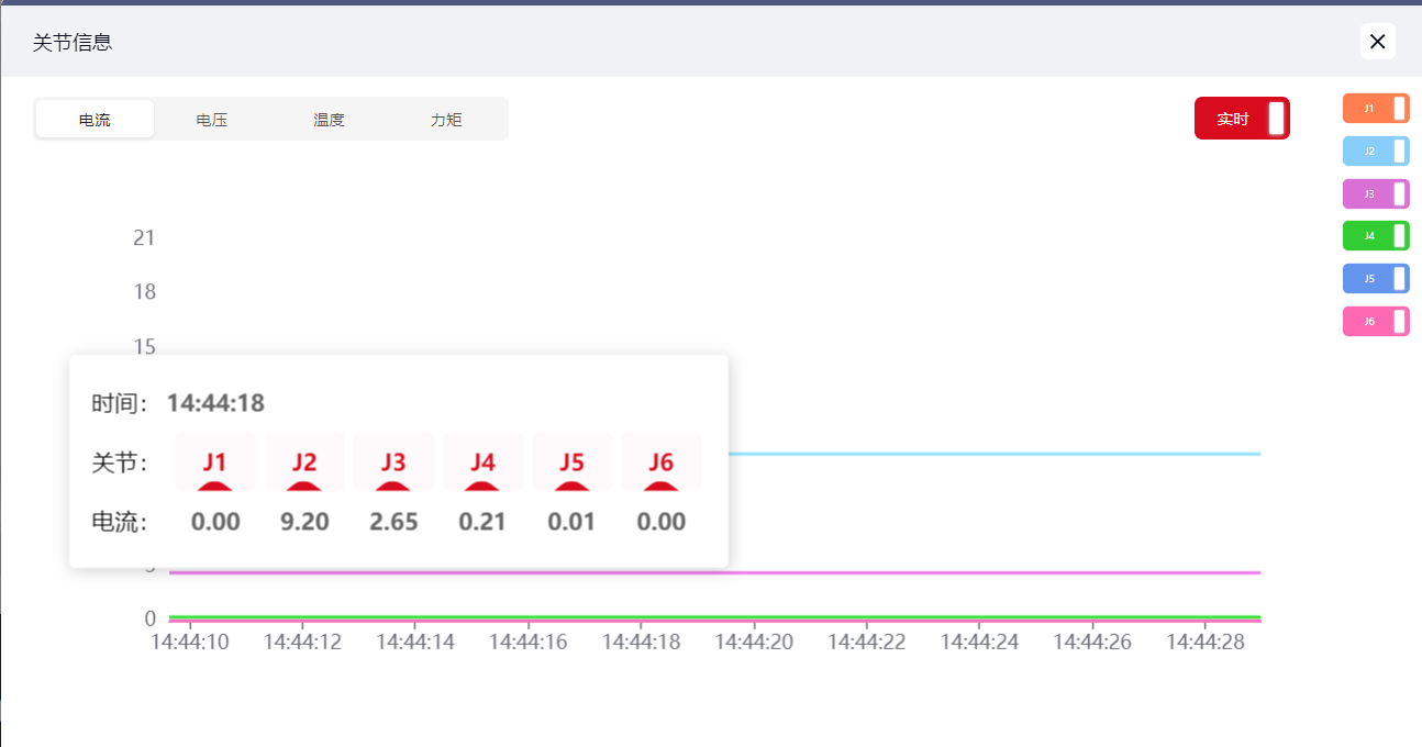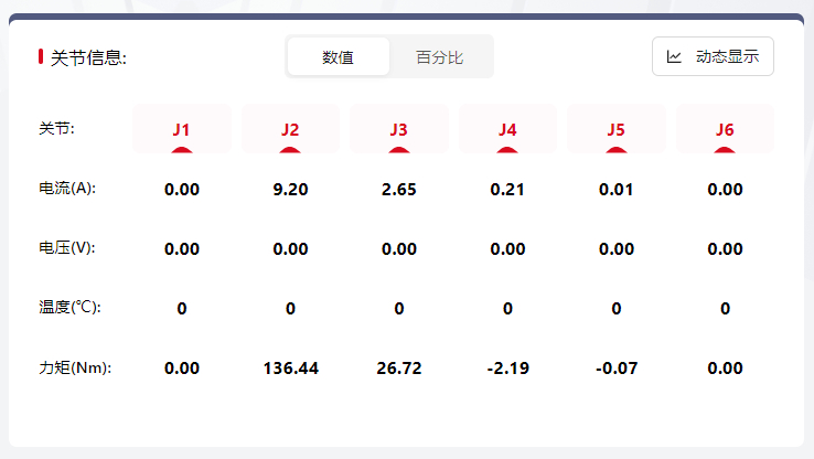此处显示了机器人每个关节的电流、电压、温度及力矩信息。