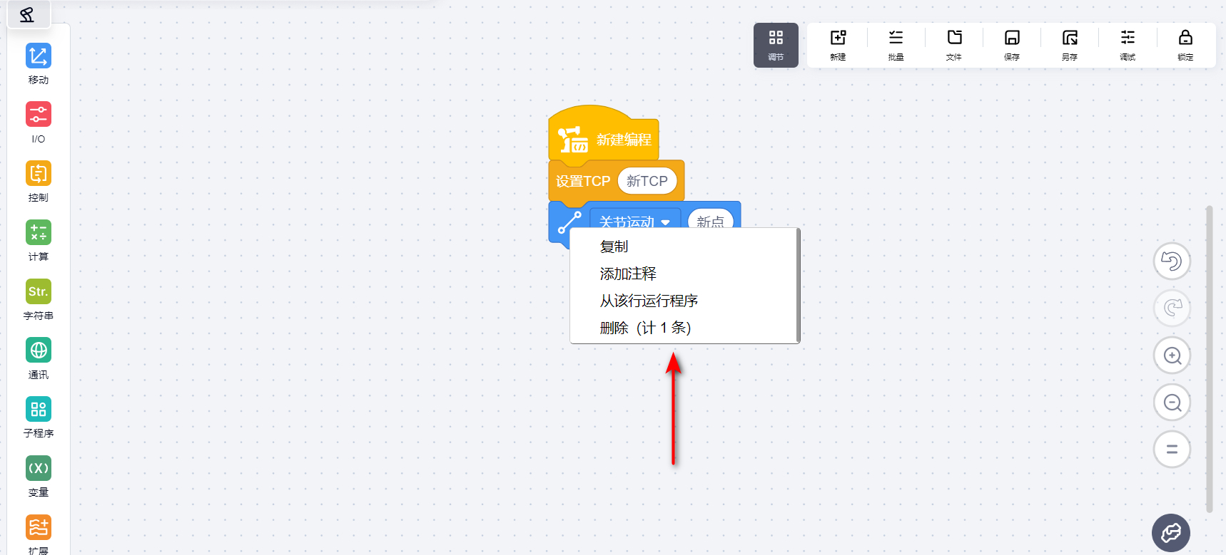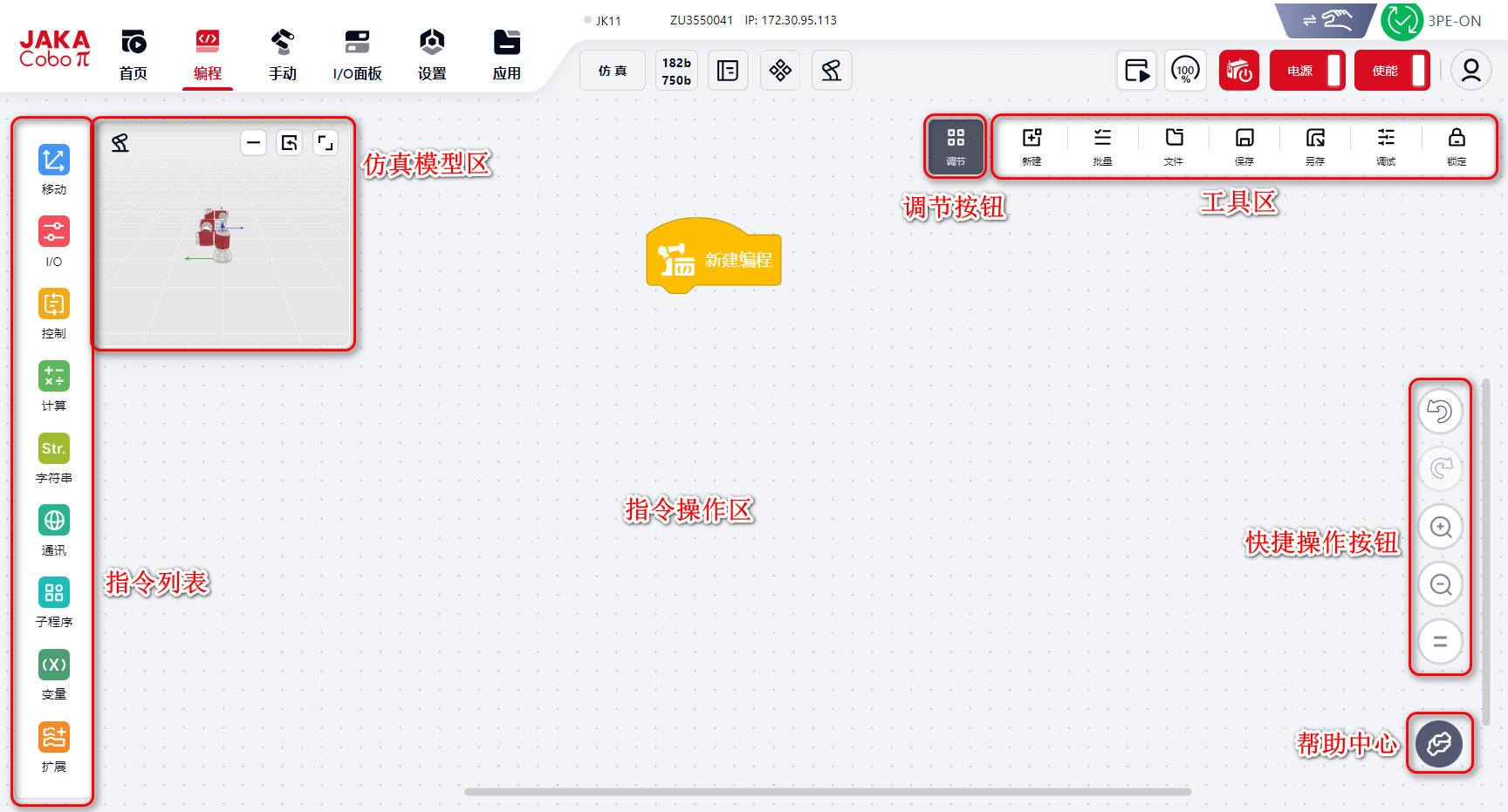 - 操作方法同上。脚本编程具体要求可参考JAKA机器人脚本编程手册。