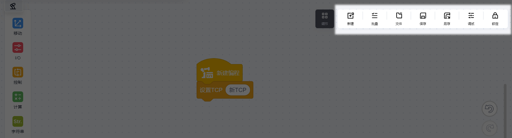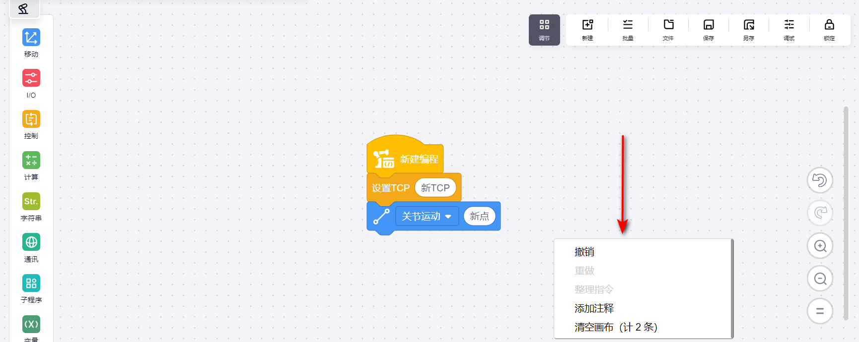 除了其他功能按钮外的所有空白区域都可作为指令操作区,用户可在这个区域内拼接指令。