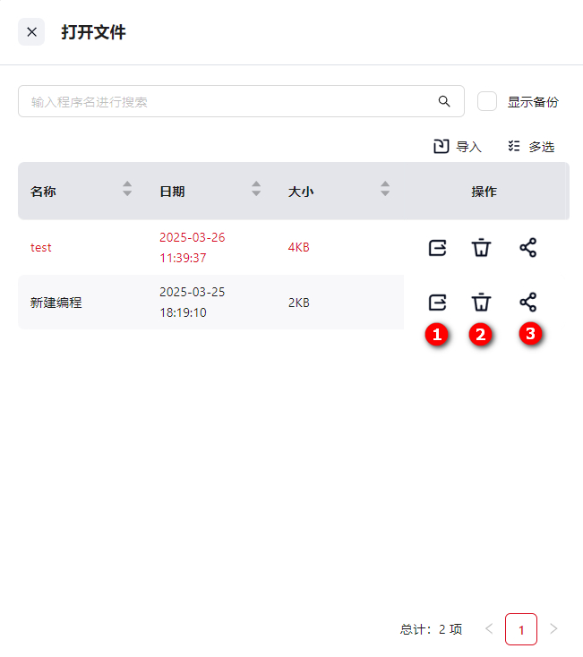 以退出子程序编辑页面、回到主程序页面。若子程序保存成功,则会作为一个与主程序相同的程序出现在操作页面,当把该操作页面的程序保存后,会在