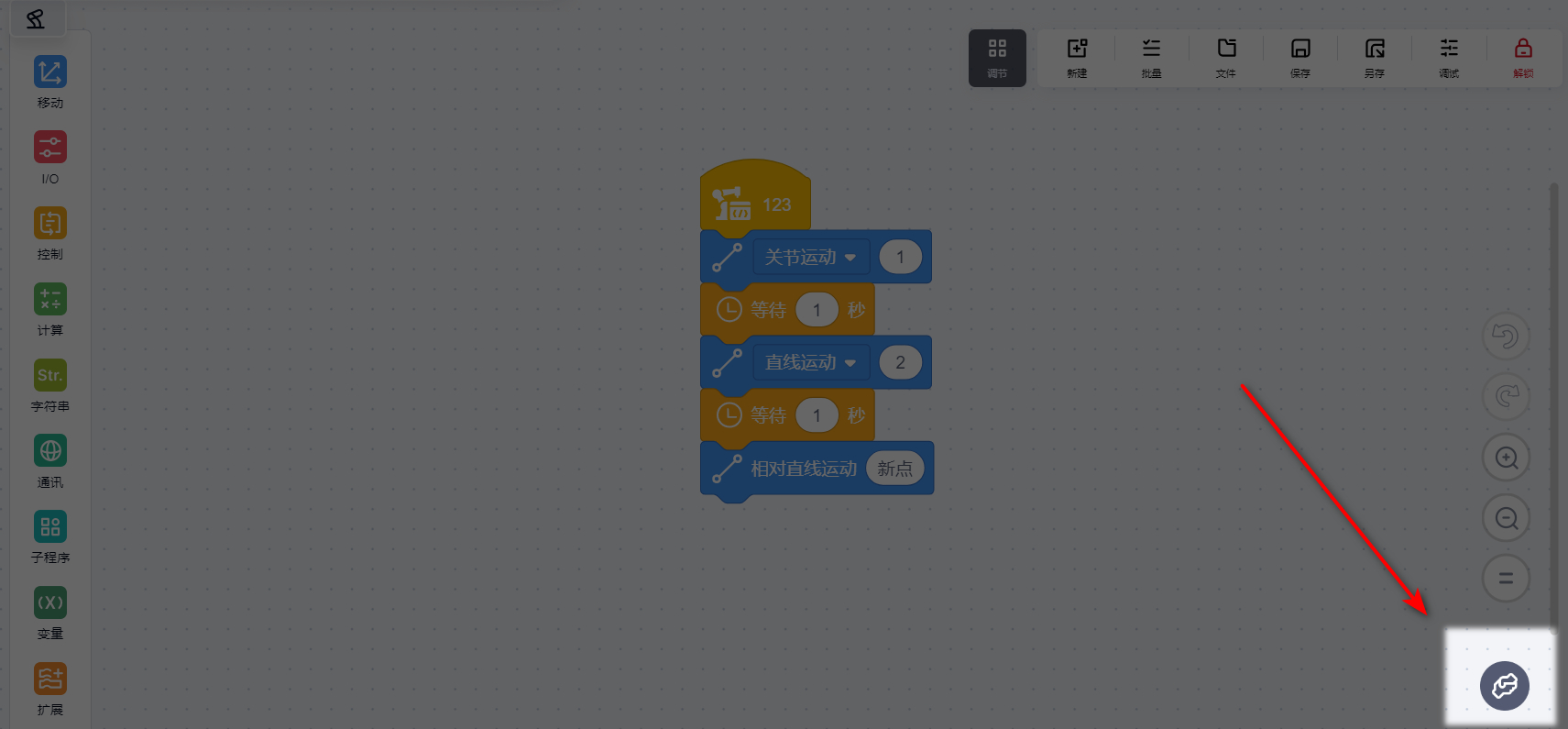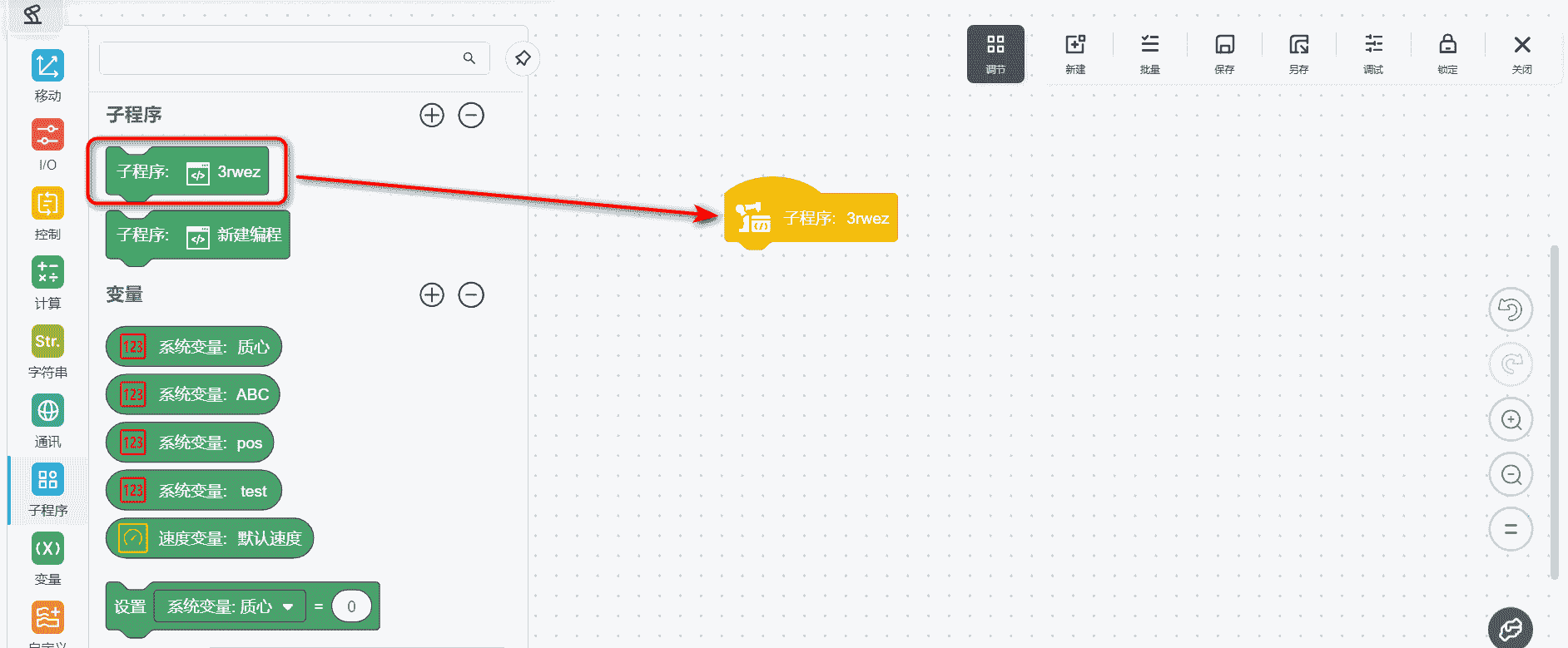 若想编辑子程序,在子程序指令栏或主程序中点击目标子程序框,即可进入子程序编辑界面。
