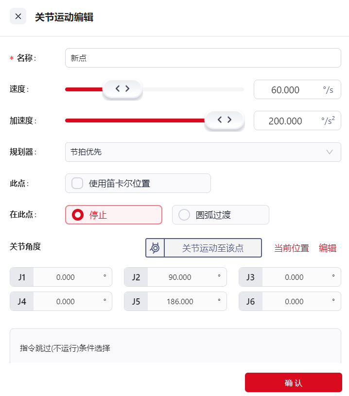 在使用关节运动时,若勾选了 使用笛卡尔位置