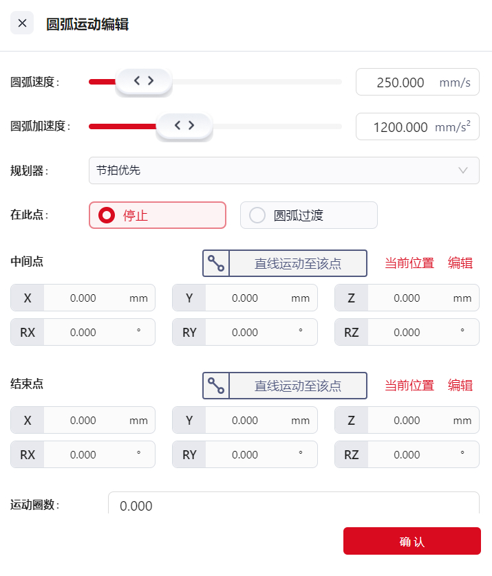 ,则机器人会以当前运动中保存的机器人笛卡尔位置解算出对应关节角度值,再进行关节运动到设定为止。