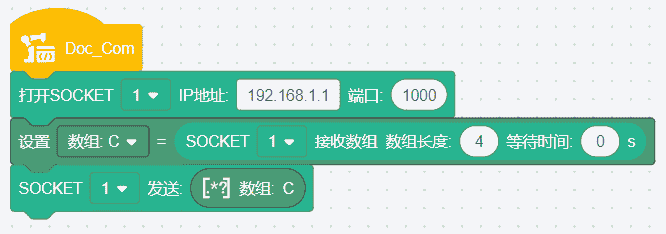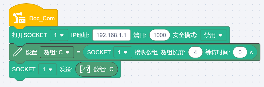 示例:连接SOCKET服务器,接收数组变量C并返回结果,数组长度为4。
