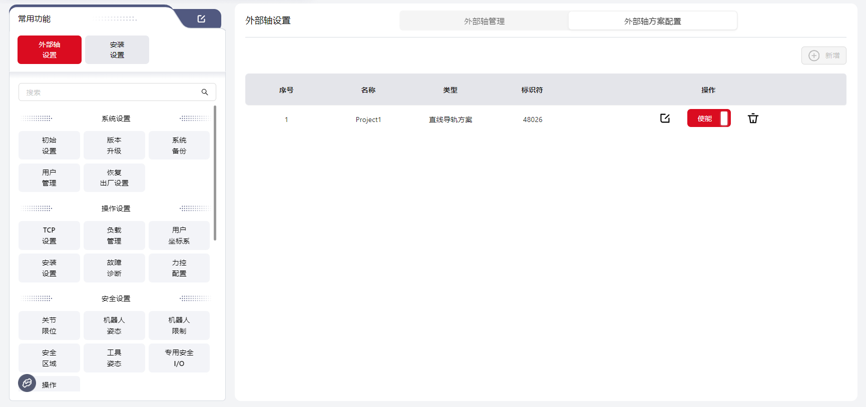 当连接好外部轴之后,点开当前界面进行配置并将其增加进列表中,配置前确保机器人属于下电、下使能的状态。